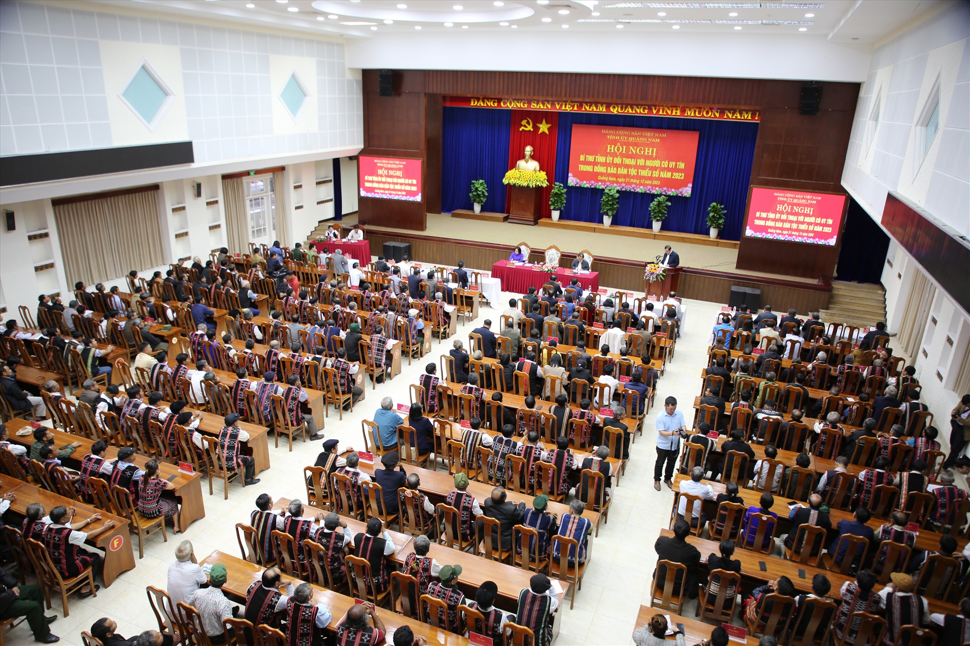 Hôm nay (21/12), Ủy viên Trung ương Đảng, Bí thư Tỉnh ủy, Chủ tịch HĐND tỉnh Phan Việt Cường chủ trì hội nghị đối thoại với người có uy tín trong đồng bào dân tộc thiểu số (NCUT). Chủ tịch Ủy ban MTTQ Việt Nam tỉnh Võ Xuân Ca, Trưởng ban Dân vận Tỉnh ủy Huỳnh Thị Thùy Dung, Phó Chủ tịch UBND tỉnh Trần Anh Tuấn và 372 vị đại biểu NCUT trên địa bàn tỉnh về dự hội nghị.