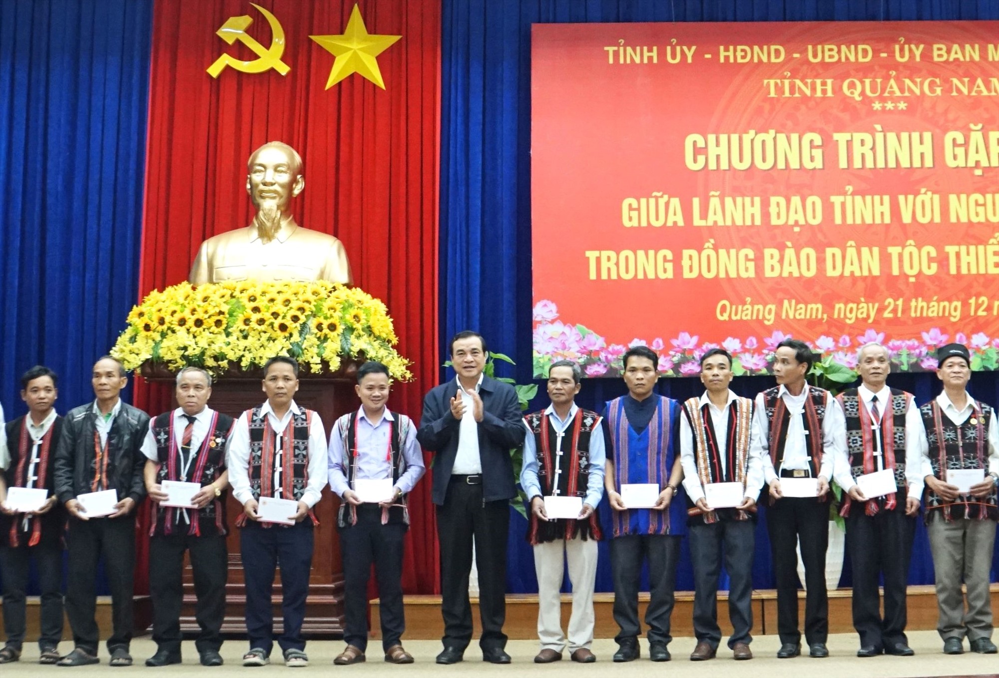 Dịp này, lãnh đạo tỉnh trao các suất quà động viên người có uy tín trong cộng đồng DTTS.