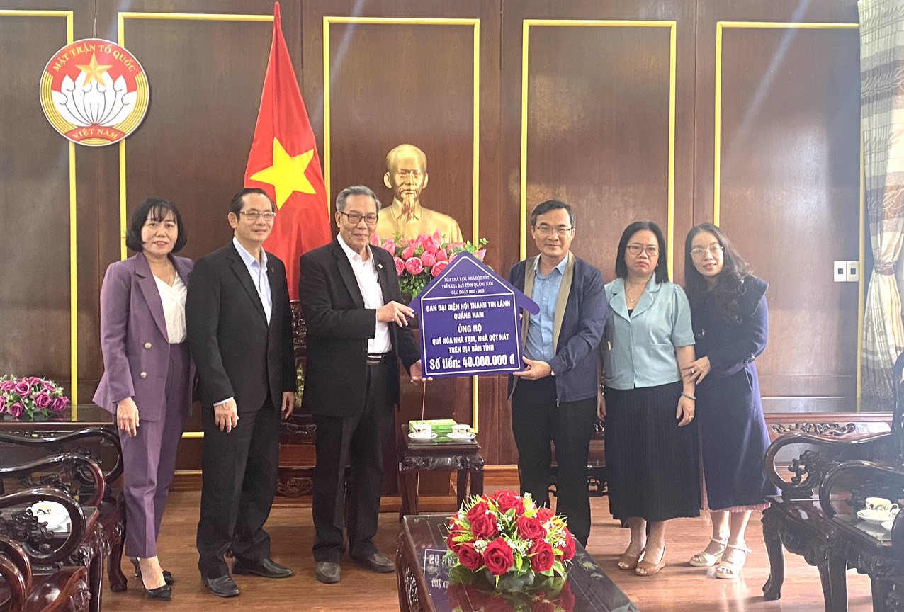Ông Nguyễn Phi Hùng, Phó Chủ tịch Thường trực Ủy ban MTTQ Việt Nam tỉnh tiếp nhận ủng hộ của Ban Đại diện Hội thánh Tin Lành Quảng Nam