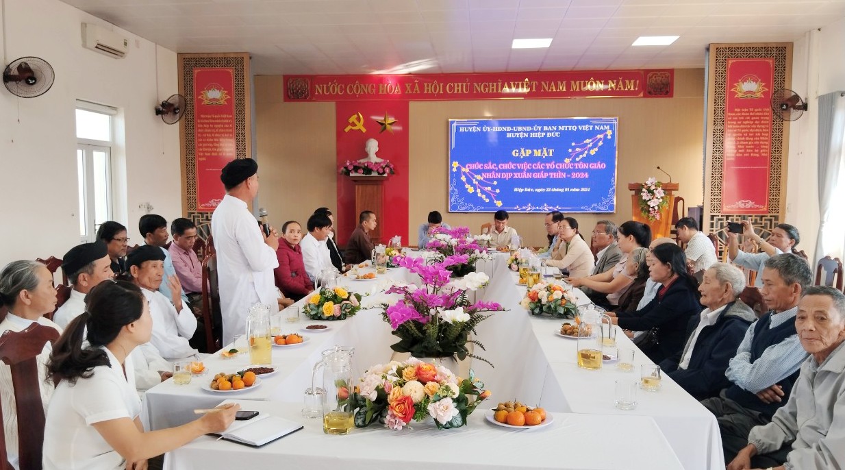 Đại diện các chức sắc tôn giáo đã bày tỏ niềm phấn khởi, vui mừng trước sự phát triển kinh tế của huyện, tin tưởng vào sự lãnh đạo của Đảng, chính quyền địa phương, cảm ơn sự quan tâm tạo điều kiện của chính quyền các cấp trong thời gian qua đối với các tổ chức tôn giáo và sẽ tiếp tục cùng với bà con tín đồ của mình hoạt động tín ngưỡng đúng theo Hiến pháp và pháp luật, trên tinh thần đoàn kết lương giáo sống “tốt đời, đẹp đạo”, tích cực tham gia các phong trào do các cấp chính quyền phát động, góp phần xây dựng huyện nhà ngày càng phát triển.