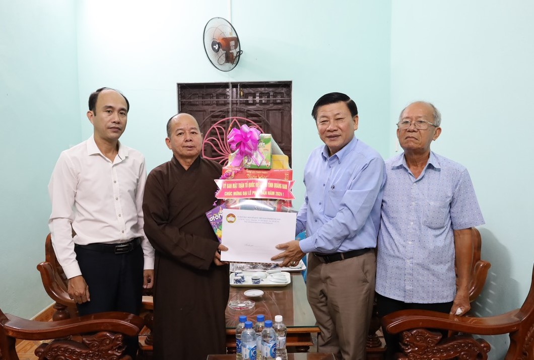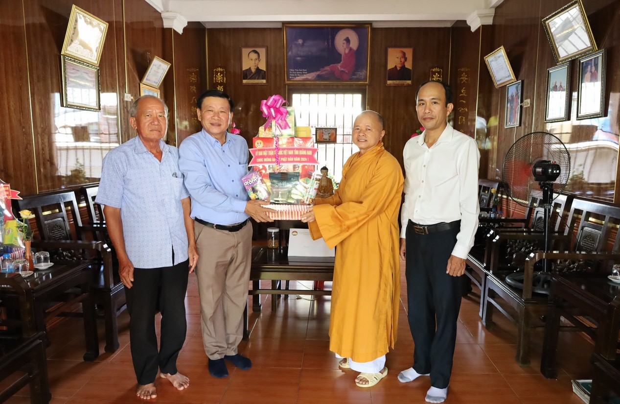 Nhân dịp Đại lễ Phật đản Phật lịch 2568 - dương lịch 2024, ngày 15/5/2024, ông Lê Thái Bình- Phó Chủ tịch Uỷ ban MTTQ Việt Nam tỉnh cùng các thành viên trong Đoàn đến thăm và chúc mừng các vị chức sắc tham gia Uỷ viên Uỷ ban MTTQ Việt Nam tỉnh, là thành viên của Ban Trị sự Giáo hội Phật giáo tỉnh.