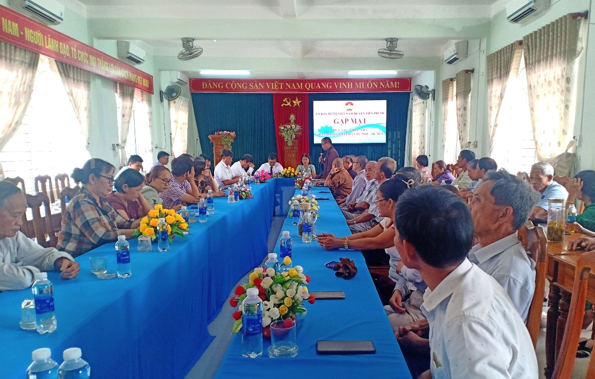 Tiên Phước: Sáng ngày 14/5/2024, Ban Thường trực Ủy ban MTTQ Việt Nam huyện Tiên Phước tổ chức buổi gặp mặt giữa lãnh đạo Huyện ủy, HĐND, UBND, các ngành liên quan với Ban trị sự giáo hội phật giáo Việt Nam huyện, các vị chức sắc, chức việc Ban hộ tự các chùa trên địa bàn huyện.