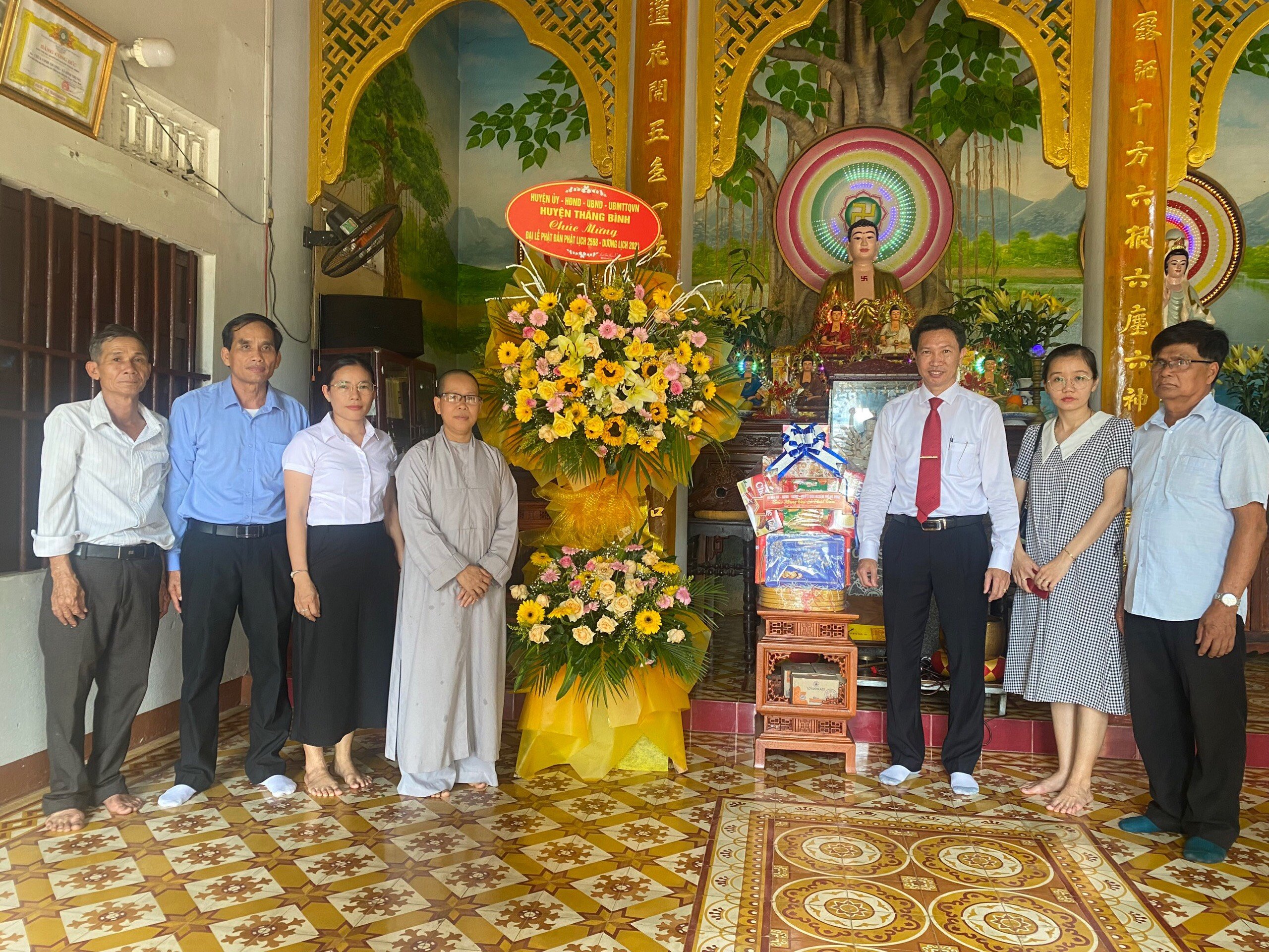Ngày 20/5/2024, lãnh đạo Huyện ủy – HĐND – UBND - Ủy ban MTTQ Việt Nam huyện Thăng Bình tổ chức gặp mặt và đến thăm chúc mừng 14 cơ sở thờ từ Phật giáo trên địa bàn huyện nhằm thể hiện tình cảm, thắt chặt thêm mối quan hệ khăng khít với các cơ sở thờ tự Phật giáo và chúc mừng Đại lễ Phật Đản Phật lịch 2568 - Dương lịch 2024 an lành, hạnh phúc
