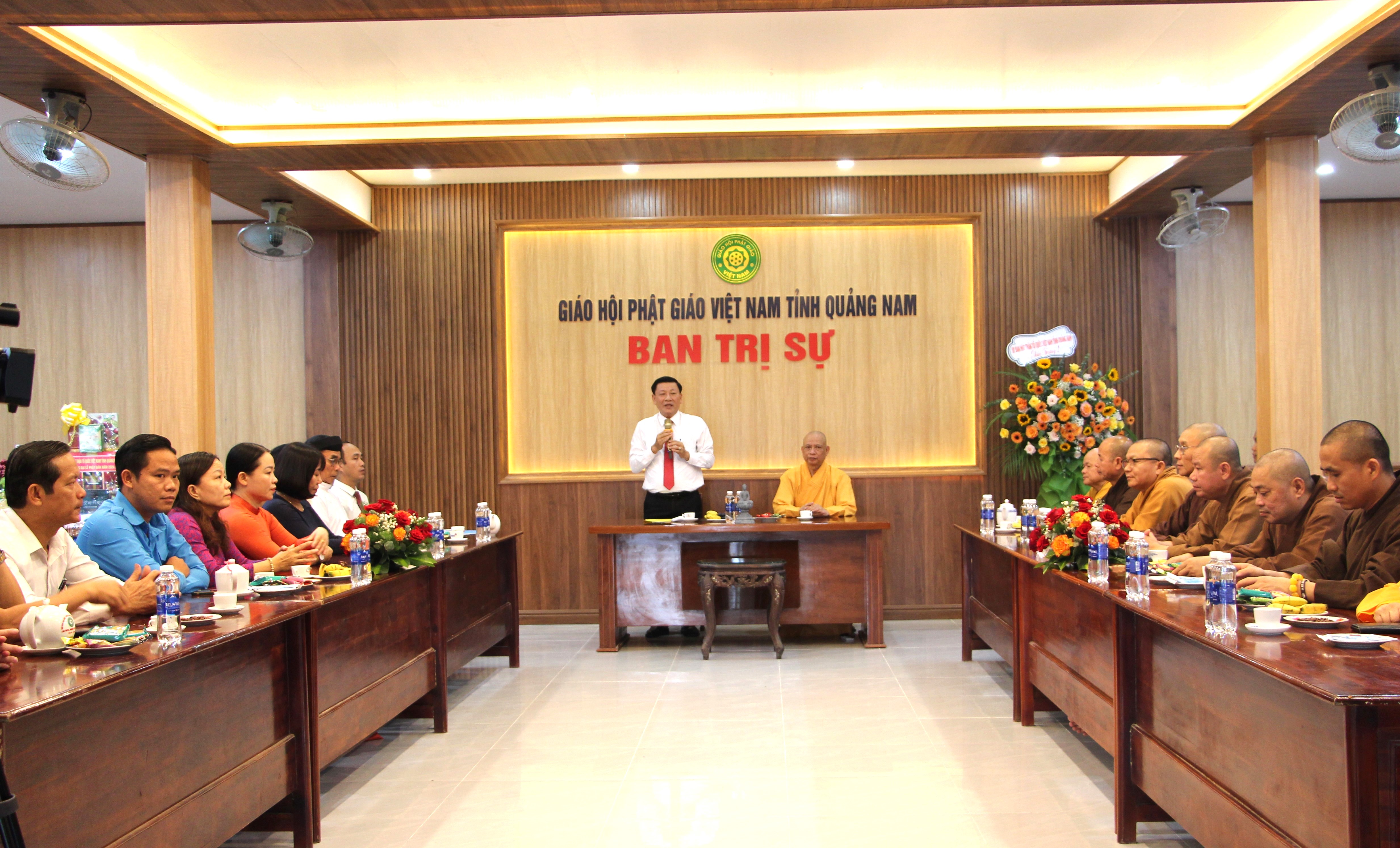 Tại buổi thăm hỏi, ông Lê Thái Bình đã trao tặng lẵng hoa, gửi lời chúc mừng tốt đẹp nhất tới Hòa thượng Thích Phước Minh cùng chư tăng, phật tử có một mùa Phật đản an lạc. Đồng thời ông Lê Thái Bình ghi nhận đánh giá cao sự đóng góp của Ban Trị sự GHPGVN tỉnh Quảng Nam và các chức sắc,  tăng ni, phật tử trong công tác an sinh, xã hội ở địa phương. Đồng thời mong muốn trong thời gian tới các vị chức sắc, tăng ni, Phật tử trên địa bàn tỉnh tiếp tục phát huy truyền thống tốt đẹp của Phật giáo Việt Nam cùng góp tâm sức của mình vào xây dựng khối đại đoàn kết toàn dân tộc, đồng bào Phật tử tham gia cùng với các tầng lớp nhân dân trên địa bàn phát triển kinh tế gia đình, xây dựng địa phương.