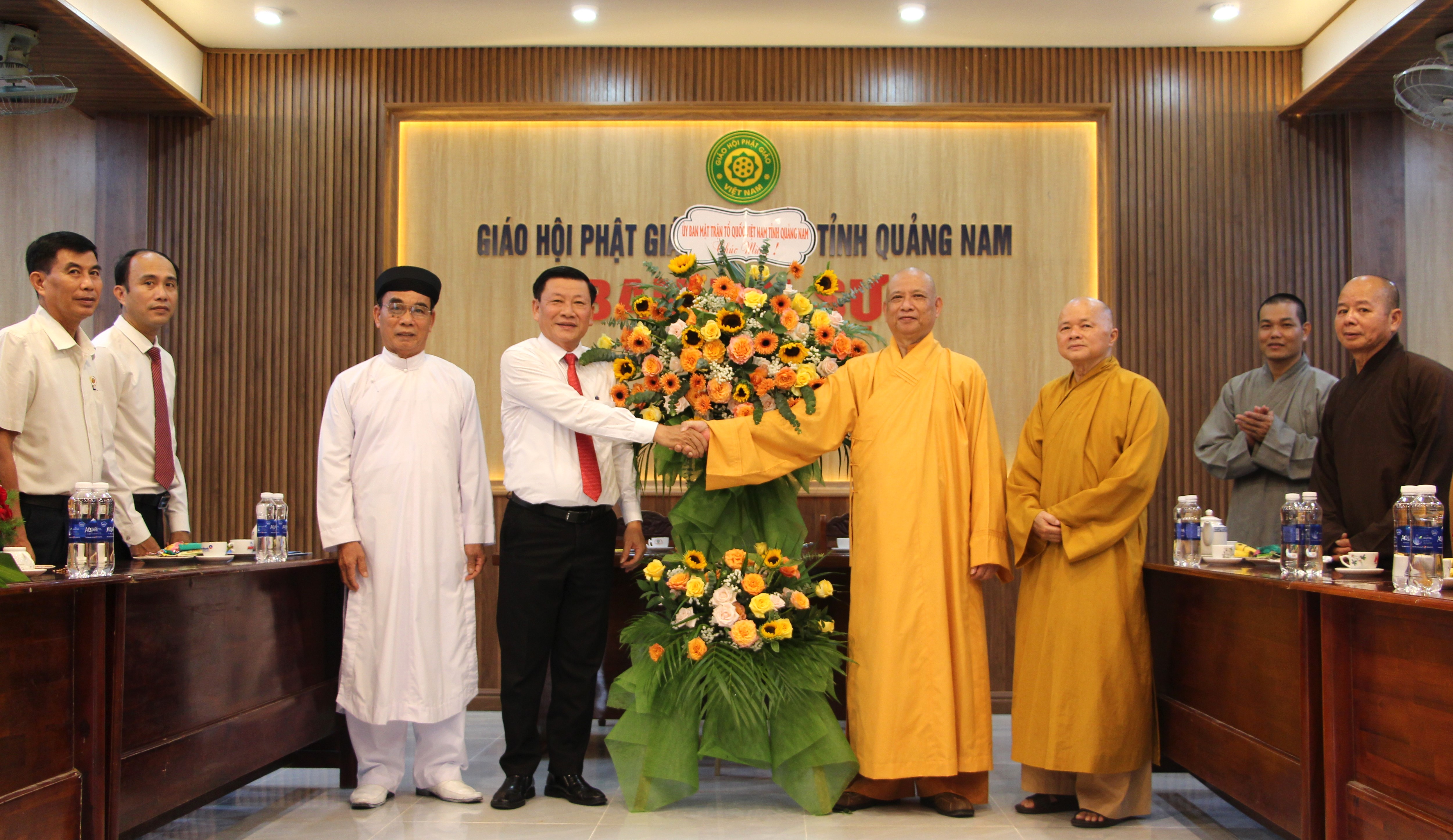 Chiều ngày 21/5, ông Lê Thái Bình, Phó Chủ tịch Ủy ban MTTQ Việt Nam tỉnh cùng các tổ chức chính trị- xã hội tỉnh và các tôn giáo bạn đến thăm hỏi và chúc mừng Ban Trị sự Giáo hội Phật giáo Việt Nam (GHPGVN) tỉnh Quảng Nam nhân dịp Đại lễ Phật đản Phật lịch 2568 (Dương lịch 2024). Tiếp đoàn có Hoà Thượng Thích Phước Minh, Trưởng Ban và các thành viên trong Ban Trị sự GHPGVN tỉnh Quảng Nam.