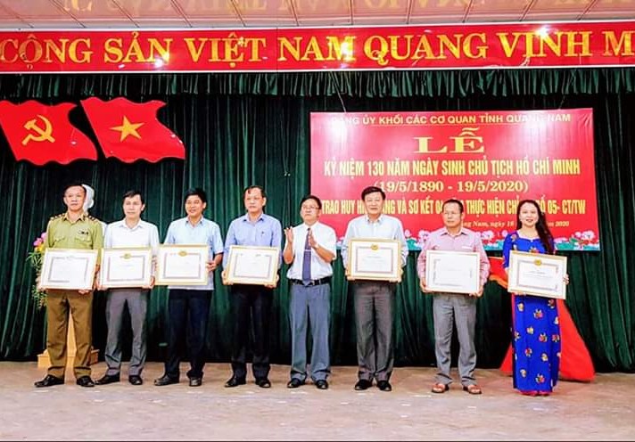 Dịp này, Ban Thường vụ Đảng ủy Khối các cơ quan tỉnh tổ chức sơ kết 4 năm thực hiện Chỉ thị 05 của Bộ Chính trị (khóa XII) và tuyên dương, khen thưởng 16 tập thể, 7 cá nhân có thành tích tiêu biểu về thực hiện học tập và làm theo tư tưởng, đạo đức, phong cách Hồ Chí Minh trong 4 năm qua. Chi bộ cơ quan Uỷ ban Mặt trận Tổ quốc Việt Nam tỉnh là 01 trong 16 tập thể vinh dự được Ban Thường vụ Đảng ủy khối các cơ quan biểu dương, khen thưởng.