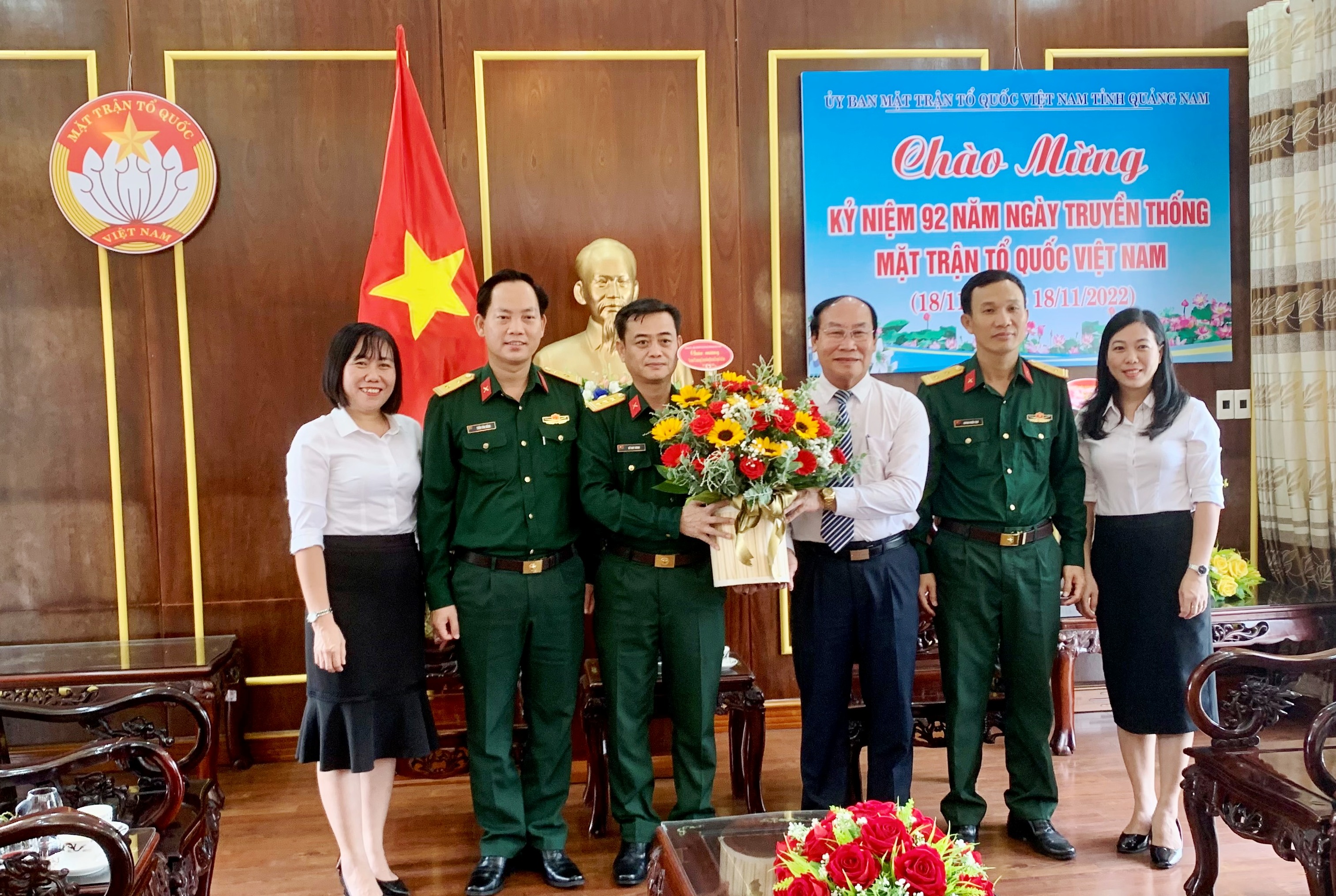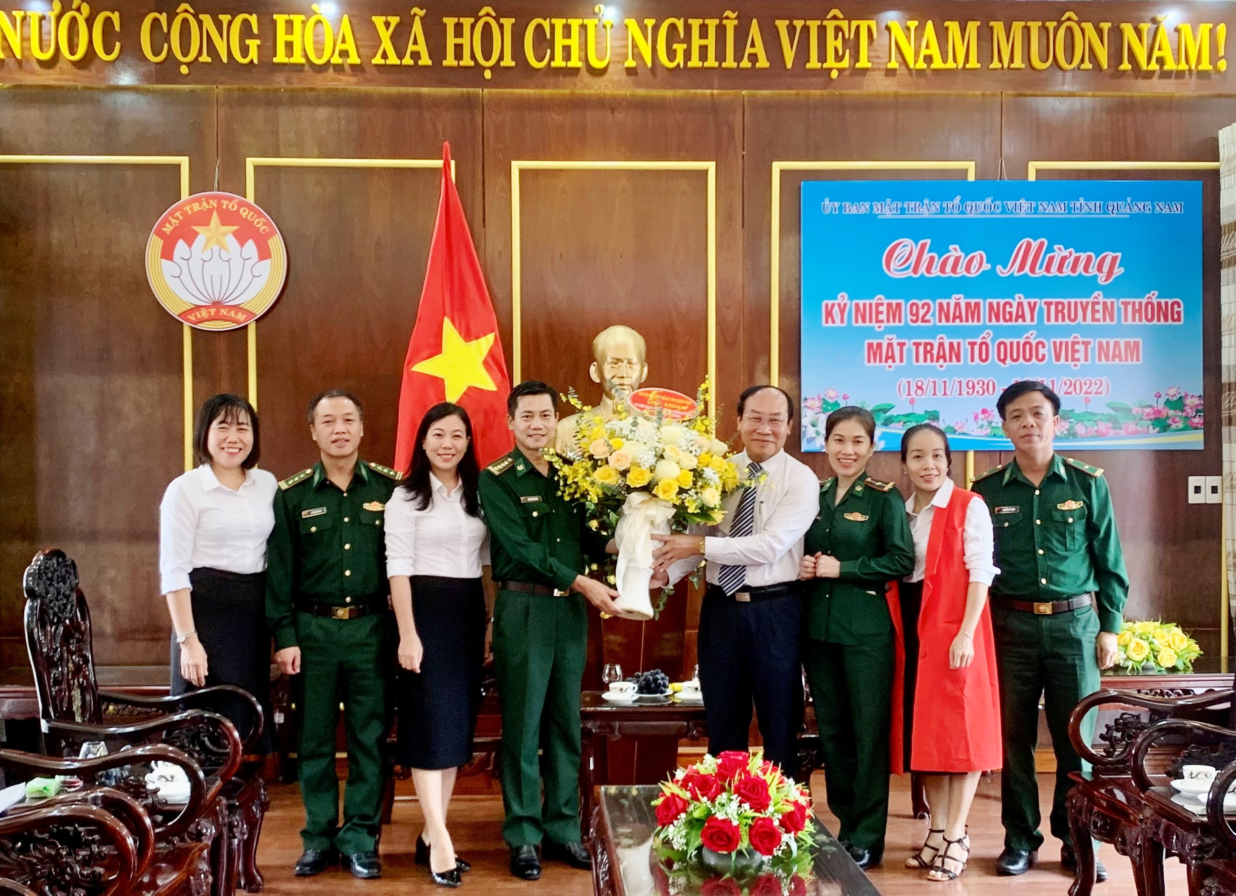 Dù thời chiến hay thời bình tình đoàn kết Quân –Dân vẫn luôn thắc chặt, trở thành truyền thống cực kỳ quý báu, tạo thành sức mạnh tổng hợp đánh bại mọi kẻ thù xâm lược, vượt qua tất cả thiên tai, dịch bệnh. Đến thăm, chúc mừng Ngày truyền thống MTTQ Việt Nam, Đại tá Hoàng Văn Mẫn- Chính ủy BCH Bộ đội Biên phòng và Thượng tá Hồ Huy Hùng- Phó Chính ủy BCH Quân sự tỉnh đại diện Đoàn có lời chúc Lãnh đạo, CBCC-NLĐ cơ quan Ủy ban MTTQ Việt Nam tỉnh mạnh khỏe, hoàn thành xuất sắc nhiệm vụ được giao. Đại tá Hoàng Văn Mẫn- Chính ủy BCH Bộ đội Biên phòng khẳng định: Trong 3 năm qua, BCH Bộ đội Biên phòng tỉnh luôn hoàn thành xuất sắc nhiệm vụ được Bộ Quốc phòng tặng Cờ thi đua xuất sắc. Với Kết quả đó có sự đóng góp rất lớn của Mặt trận các cấp luôn đồng hành cùng với lực lượng Bộ đội Biên phòng trong công tác tuyên truyền vận động nhân dân các vùng biên giới, hải đảo phát triển kinh tế, xóa đói giảm nghèo, vươn khơi bám biển, giữ vững biên cương, hải đảo. Những ngày qua, khắp các địa bàn dân cư sôi nổi tổ chức Ngày hội đại đoàn kết toàn dân, lãnh đạo các đồn biên phòng đã đến tham dự chung vui cùng bà con, thể hiện tình cảm, gắn kết tình Quân- Dân.