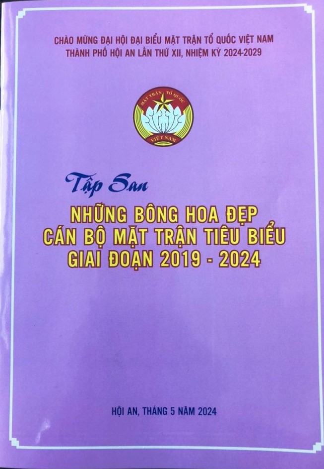 Chào mừng Đại hội đại biểu MTTQ Việt Nam thành phố lần thứ XII (2024 - 2029), Ban thường trực Ủy ban MTTQ Việt Nam TP.Hội An tổ chức biên soạn, phát hành các ấn phẩm tuyên truyền: “Lịch sử Mặt trận Tổ quốc Việt Nam thành phố Hội An (1930 – 2020)” và Tập san “Những bông hoa đẹp cán bộ Mặt trận tiêu biểu giai đoạn 2019 - 2024”