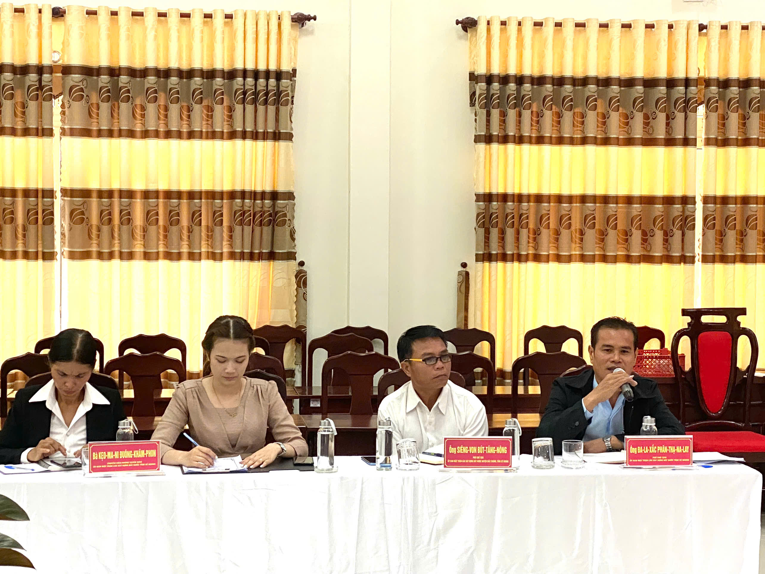 Đoàn cán bộ Ủy ban Mặt trận Lào xây dựng đất nước tỉnh Sê Koong trao đổi tại hội nghị