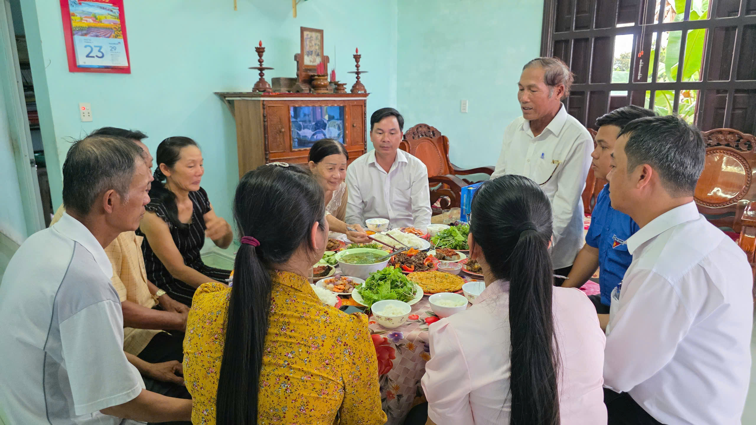 Tại buổi tri ân, cán bộ Mặt trận cùng đại diện các đoàn thể xã như Hội Cựu chiến binh, Hội Liên hiệp Phụ nữ, Đoàn Thanh niên, Hội Nông dân đã thăm hỏi, động viên sức khỏe của Mẹ, đồng thời cùng nhau chuẩn bị bữa cơm ấm cúng, thể hiện lòng biết ơn sâu sắc trước những hy sinh, đóng góp to lớn của Mẹ và gia đình trong sự nghiệp đấu tranh giải phóng dân tộc.