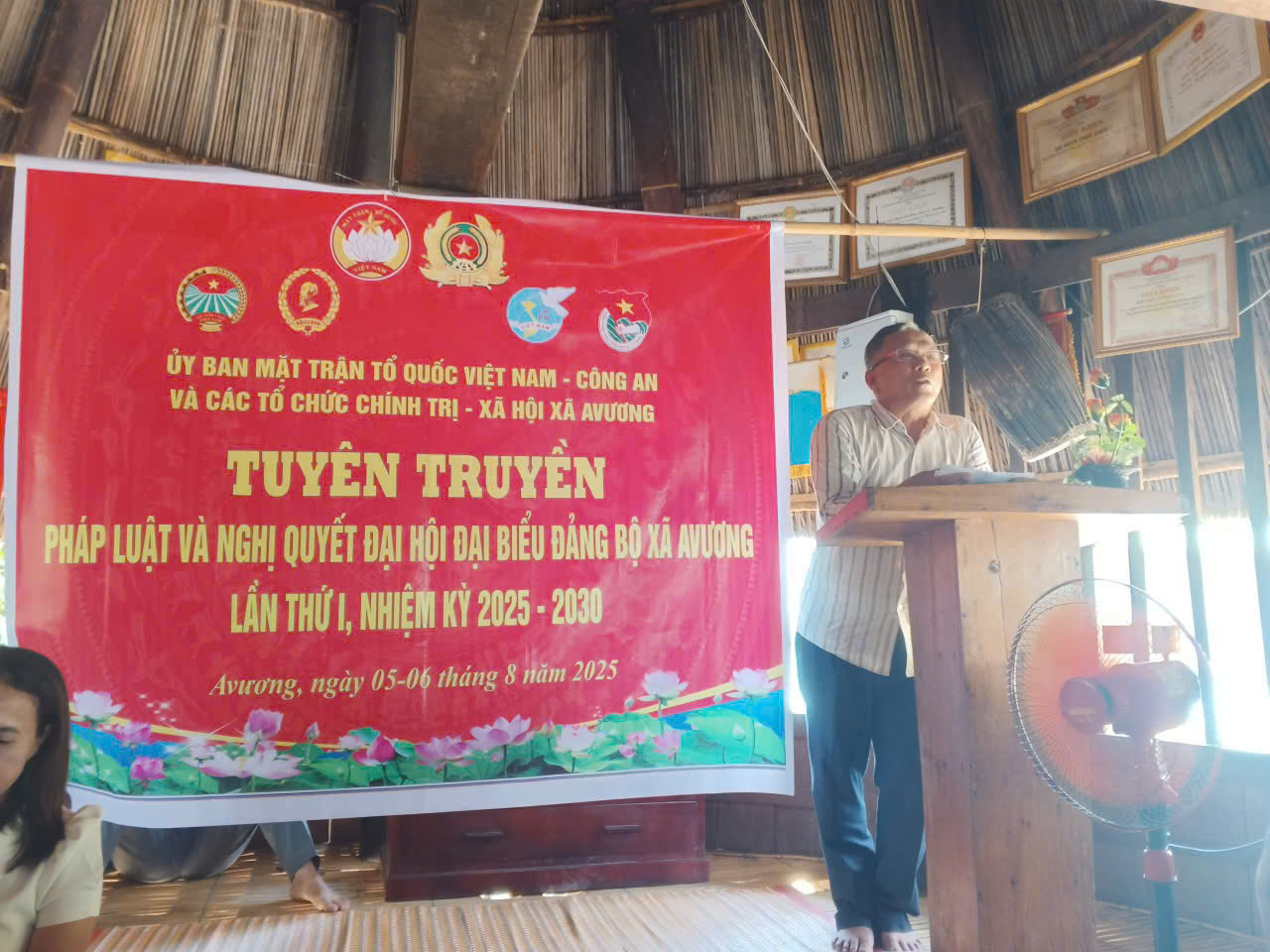Nội dung trọng tâm của đợt công tác là tuyên truyền, phổ biến pháp luật, Nghị quyết Đại hội Đảng bộ xã Avương lần thứ I, nhiệm kỳ 2025–2030, cùng các văn bản chỉ đạo, hướng dẫn của Trung ương và thành phố. Đồng thời, các tổ công tác nắm bắt tình hình đời sống Nhân dân sau khi mô hình chính quyền 2 cấp chính thức đi vào hoạt động.
