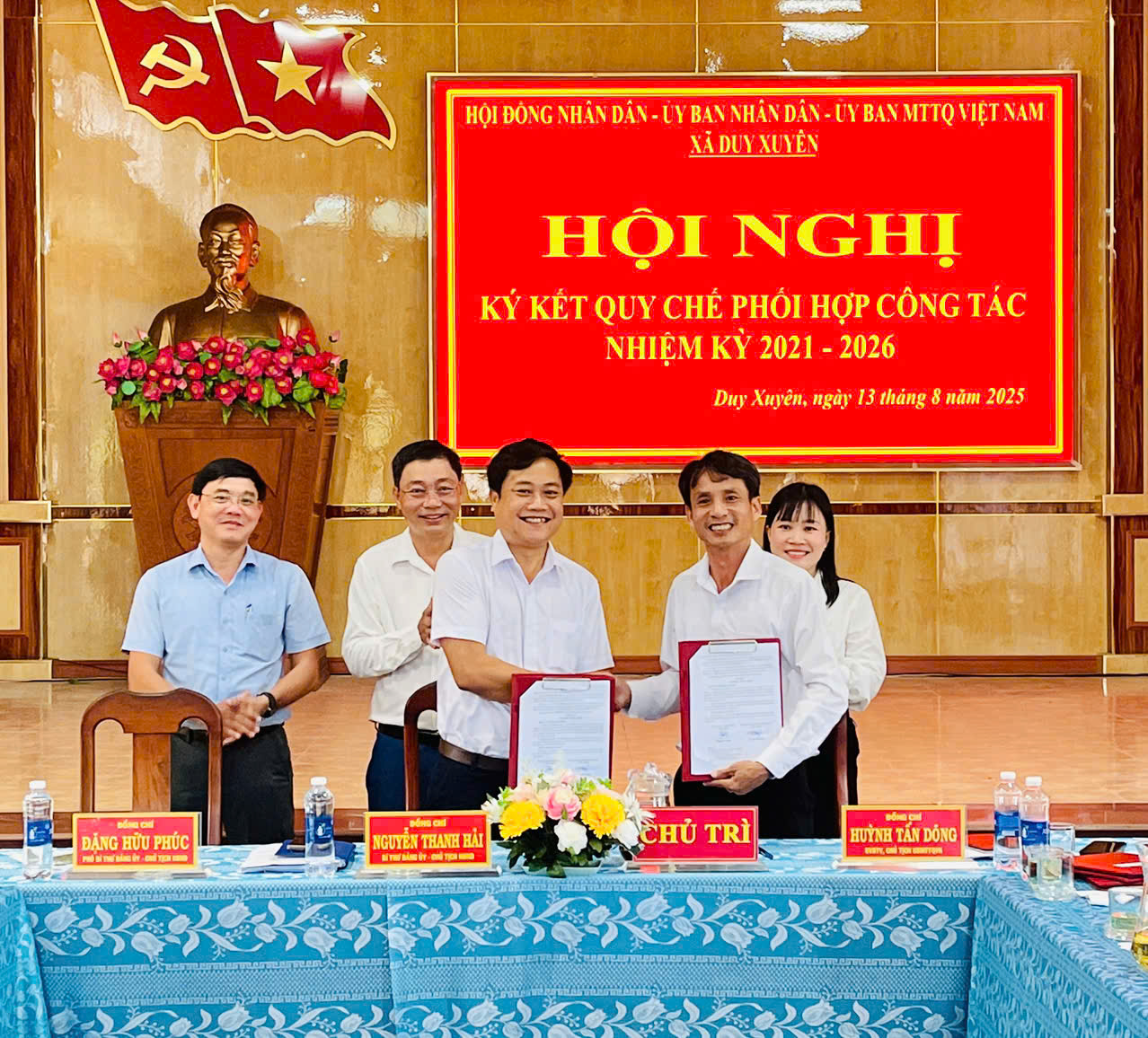 Việc ký kết Quy chế phối hợp lần này thể hiện quyết tâm chính trị và sự gắn kết chặt chẽ của các cơ quan trong hệ thống chính trị xã Duy Xuyên, hướng tới nâng cao hiệu quả hoạt động và đáp ứng yêu cầu, nhiệm vụ trong giai đoạn mới.