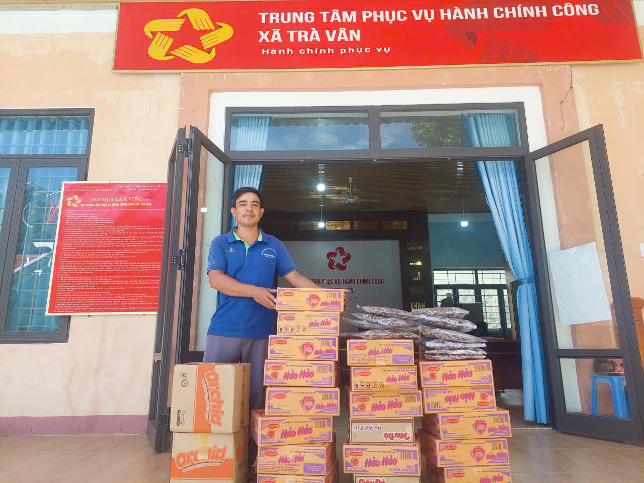 Đồng chí Nguyễn Tấn Thành – Phó Bí thư Đảng ủy, Chủ tịch UBND xã Trà Vân đã thay mặt Đảng ủy, HĐND, UBND, Ủy ban MTTQ Việt Nam xã tiếp nhận các phần quà.
