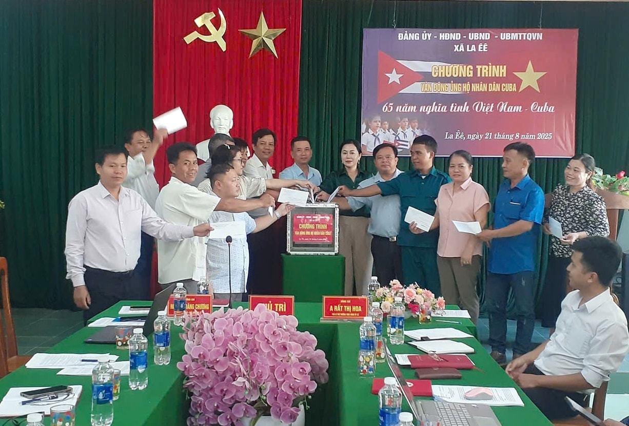 Hưởng ứng lời kêu gọi của Trung ương Hội Chữ thập đỏ Việt Nam, Ủy ban MTTQ xã La Êê phối hợp cùng Đảng ủy, HĐND, UBND xã tổ chức lễ phát động quyên góp ủng hộ nhân dân Cuba.