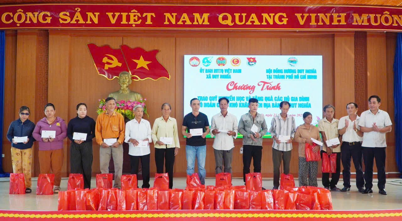 Hoạt động mang ý nghĩa thiết thực, thể hiện tinh thần “tương thân, tương ái” của bà con đồng hương Duy Nghĩa tại TP. Hồ Chí Minh đối với quê hương. Chương trình không chỉ hỗ trợ kịp thời về vật chất, tinh thần cho học sinh và người dân, mà còn là cầu nối gắn kết nghĩa tình giữa những người con xa quê với mảnh đất Duy Nghĩa thân yêu.