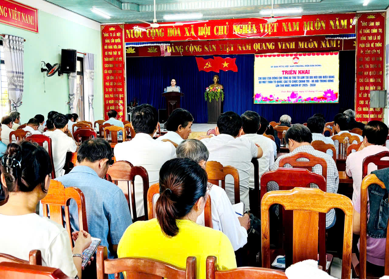 Ngày (13.11), Ủy ban MTTQ Việt Nam phường Điện Bàn Đông tổ chức hội nghị triển khai chỉ đạo của đồng chí Tổng bí thư Tô Lâm tại Đại hội đại biểu Đảng bộ Mặt trận Tổ quốc, các đoàn thể Trung ương lần thứ nhất, nhiệm kỳ 2025-2030.