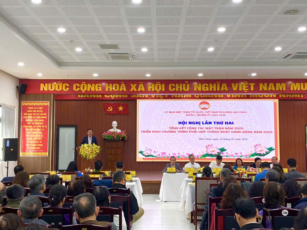 Hội nghị đã xem video tổng kết công tác Mặt trận năm 2025; nghe trình bày Dự thảo Chương trình phối hợp và thống nhất hành động năm 2026; nghe thông báo tình hình kinh tế – xã hội, quốc phòng – an ninh năm 2025 và nhiệm vụ trọng tâm năm 2026; đồng thời trao đổi các tham luận làm rõ kết quả, mô hình hay, cách làm hiệu quả trong công tác Mặt trận ở khu dân cư.