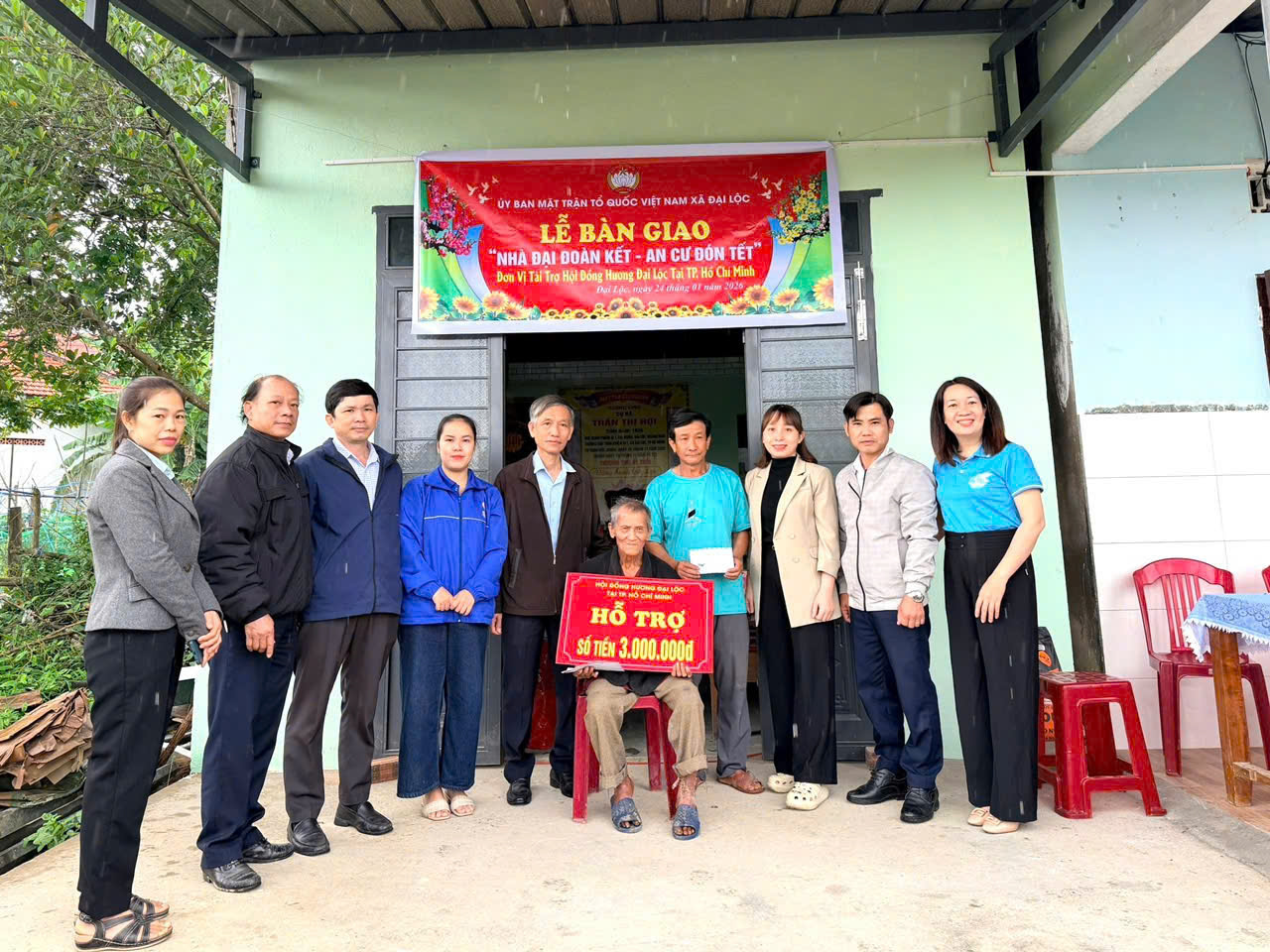 Căn nhà được xây dựng từ nguồn tài trợ của Hội đồng hương Đại Lộc tại Thành phố Hồ Chí Minh với tổng kinh phí 100.850.000 đồng. Sau hơn 03 tháng thi công, công trình đã hoàn thành và đưa vào sử dụng, góp phần giúp gia đình ổn định chỗ ở, yên tâm hơn trong mùa mưa lũ, đồng thời có điều kiện an cư, đón Tết Nguyên đán trong không khí ấm áp, nghĩa tình.