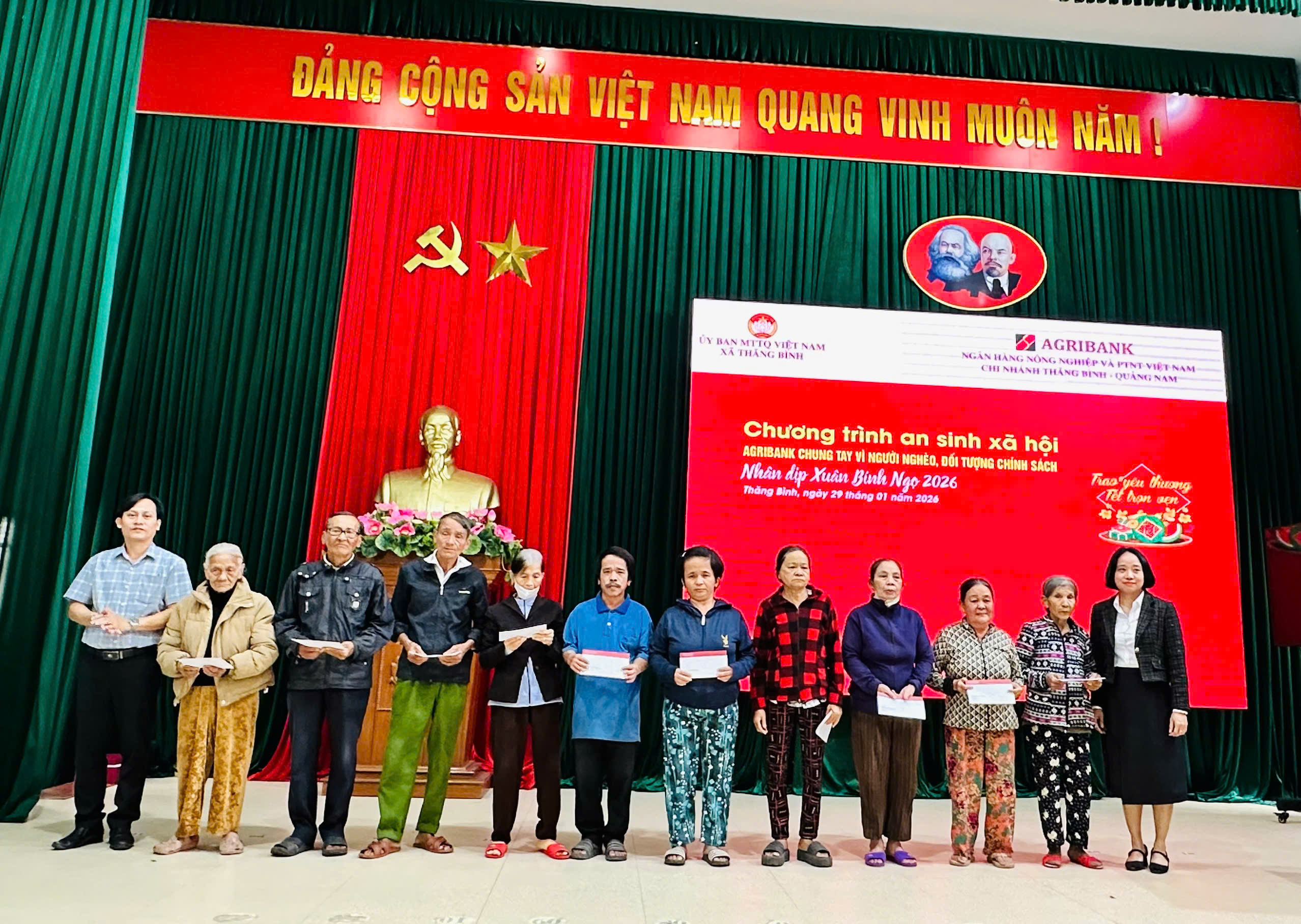 Tại chương trình, Ngân hàng Agribank đã trao biểu trưng tài trợ và quà hỗ trợ cho 10 hộ nghèo, cận nghèo trên địa bàn xã, mỗi suất trị giá 1.000.000 đồng, tổng giá trị 10.000.000 đồng, góp phần động viên các gia đình có thêm điều kiện đón Tết cổ truyền của dân tộc trong không khí ấm áp.