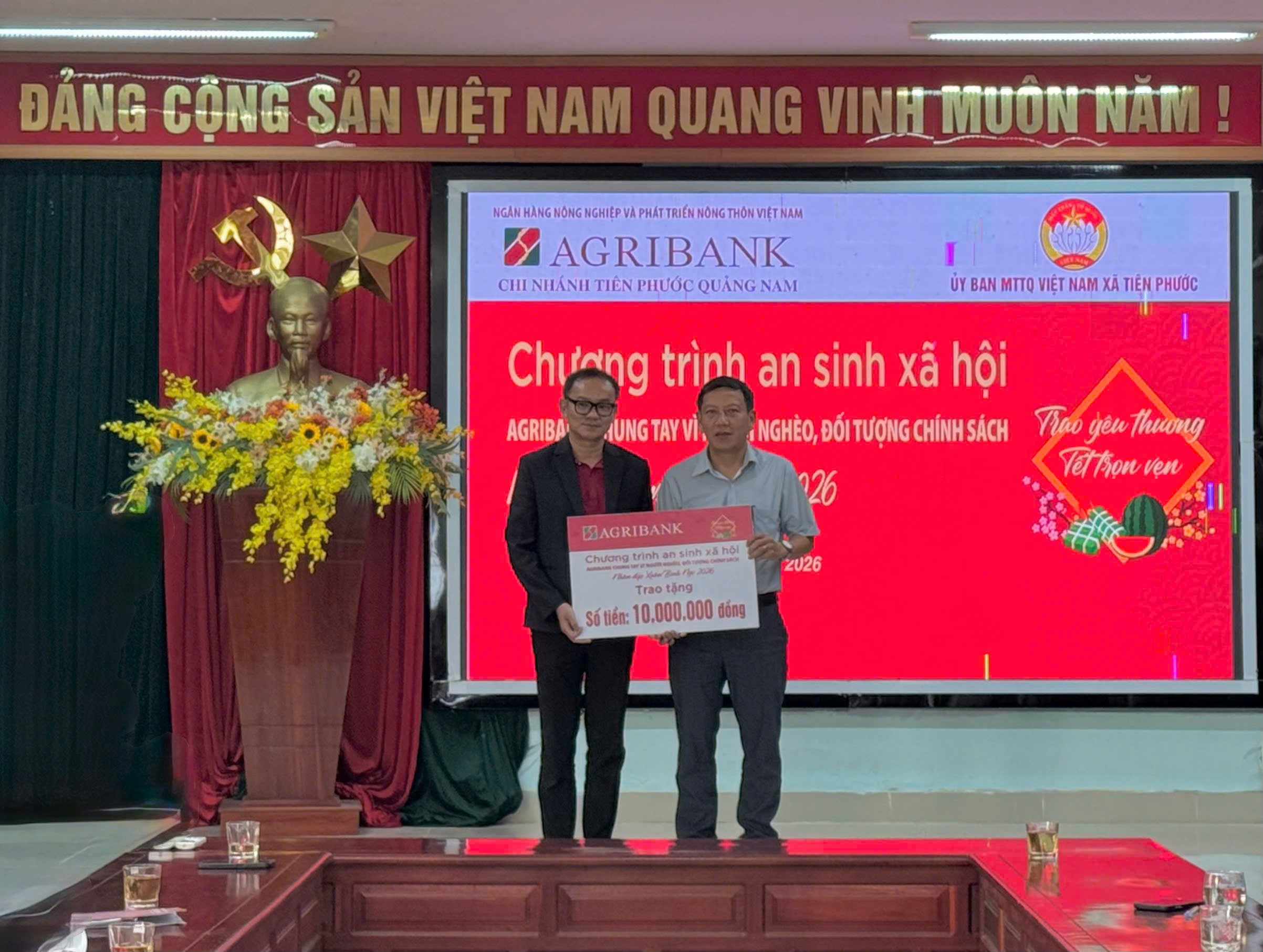 Tại chương trình, Agribank Chi nhánh Tiên Phước đã trao 10 suất quà Tết, mỗi suất trị giá 1 triệu đồng, cho 10 hộ gia đình khó khăn, thể hiện tinh thần trách nhiệm xã hội, sự quan tâm và sẻ chia của doanh nghiệp đối với người nghèo, đối tượng chính sách; góp phần giúp các hộ đón Tết cổ truyền trong không khí vui tươi, đầm ấm.