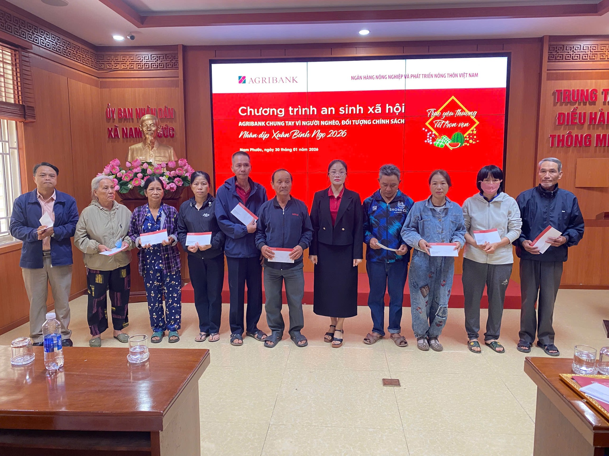 Trong khuôn khổ Chương trình “An sinh xã hội – Agribank chung tay vì người nghèo, đối tượng chính sách” năm 2026, Ban Tổ chức đã trao 40 suất quà Tết cho 40 hộ nghèo, hộ cận nghèo, hộ có hoàn cảnh đặc biệt khó khăn và người khuyết tật, với tổng kinh phí 20 triệu đồng, góp phần động viên, hỗ trợ các hộ dân đón Tết Nguyên đán trong không khí ấm áp, nghĩa tình.