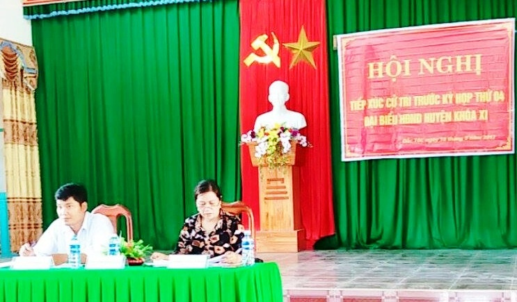 Trong 04 ngày, từ 15 - 18.5.2017, Ban Thường trực Ủy ban MTTQ Việt Nam huyện phối hợp với Thường trực HĐND-UBND huyện chỉ đạo Mặt trận các xã - thị trấn tổ chức tiếp xúc cử tri trước kỳ họp thứ 4 - HĐND huyện khóa XI, nhiệm kỳ 2016-2021 tại 12 xã, thị trấn, có trên 720 cử tri tham dự với 180 lượt ý kiến đề xuất, kiến nghị.