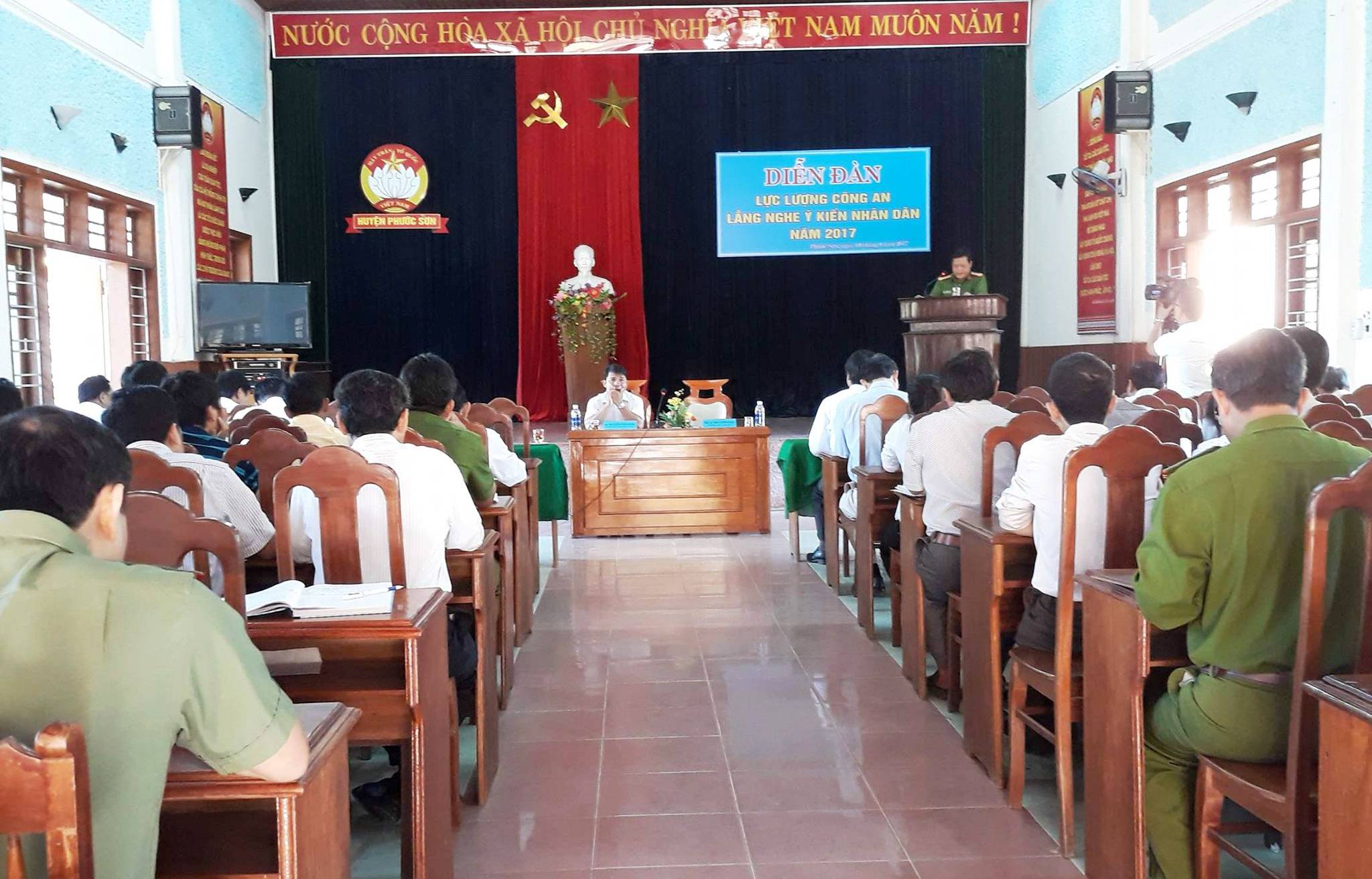 Diễn đàn có sự tham dự của đồng chí Đoàn Văn Thông - Phó Bí thư Huyện ủy Phước Sơn, đồng chí Nguyễn Quảng - Phó Chủ tịch UBND huyện; Đại tá Nguyễn Giới - Trưởng Công an huyện và hơn 50 cử tri là cán bộ và nhân dân trên địa bàn huyện.