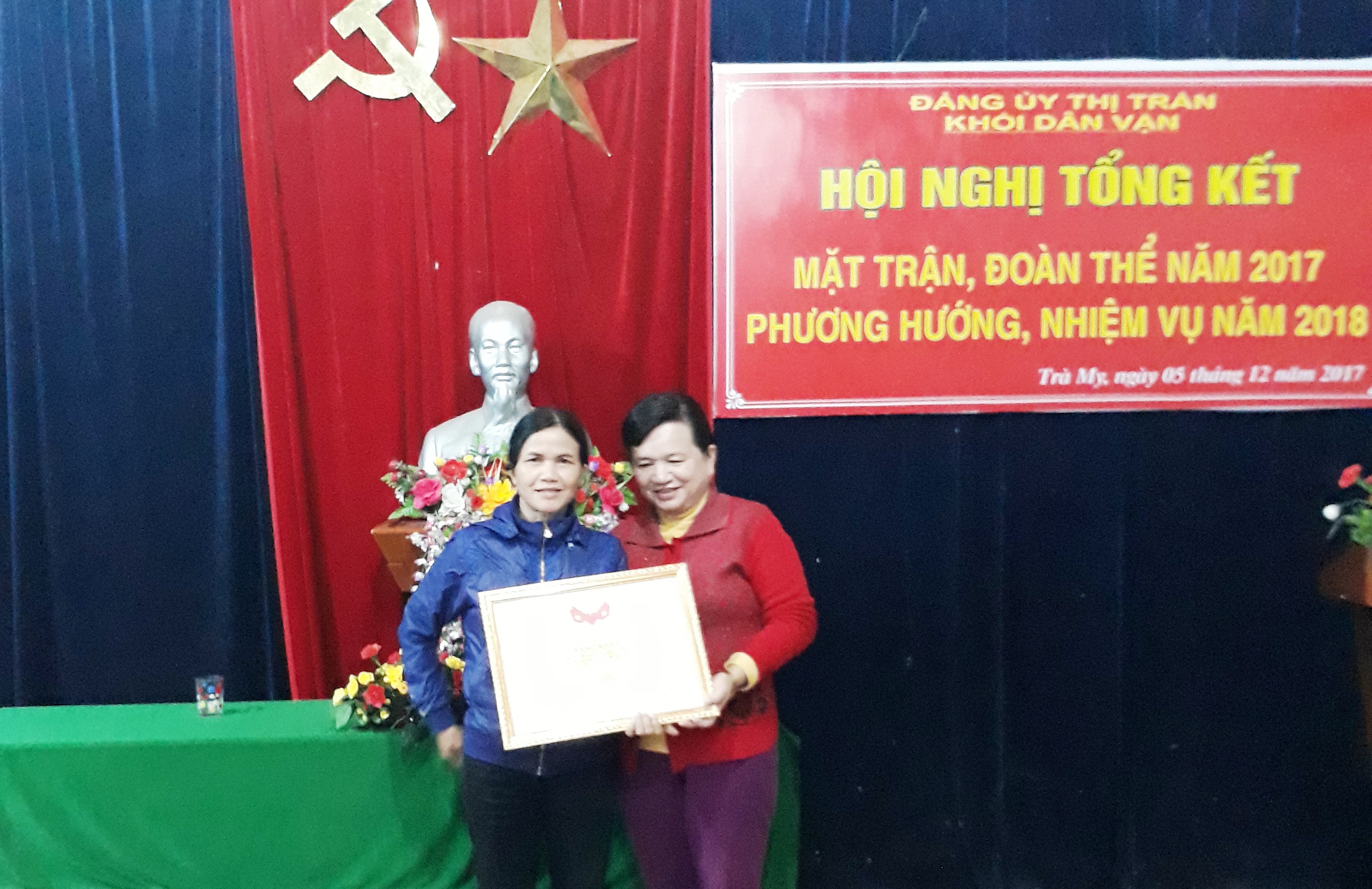 Cũng nhân dịp này, thừa ủy quyền của Ủy ban MTTQ Việt Nam tỉnh, bà Nguyễn Thị Minh Lành đã tặng 05 xuất quà cho 05 hộ có hoàn cảnh khó khăn và tặng Bằng khen của Ủy ban MTTQ Việt nam tỉnh cho Ban công tác Mặt trận Đồng Trường I, thị trấn Trà My đã có thành tích xuất sắc trong năm 2017./.