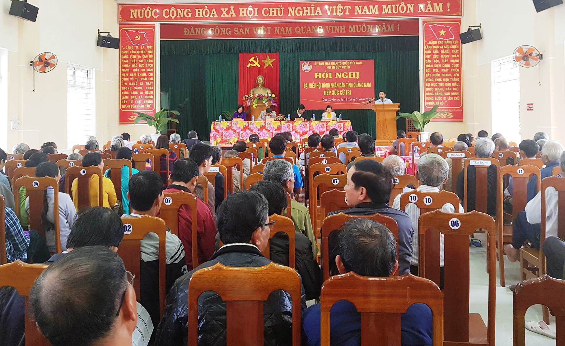Đại biểu HĐND tỉnh đã đánh giá cao các ý kiến, kiến nghị chính đáng của cử tri huyện Duy Xuyên, đồng thời, trao đổi, tiếp thu và trả lời những ý kiến, kiến nghị của cử tri. Các kiến nghị ngoài thẩm quyền, tổ đại biểu HĐND tỉnh Quảng Nam sẽ có trách nhiệm phản ánh, kiến nghị báo cáo với HĐND tỉnh, Quốc hội, Chính phủ, từng bước giải quyết các vấn đề bức thiết tại cơ sở.
