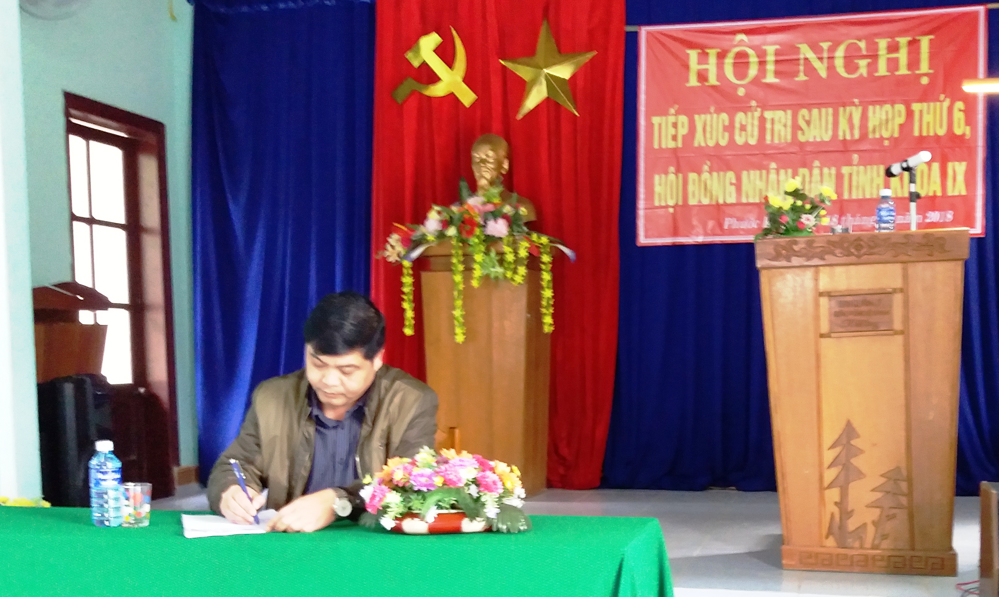 Sau khi nghe ông Nguyễn Mạnh Hà-Tỉnh ủy viên, Phó Bí thư Huyện ủy, Chủ tịch UBND huyện báo cáo những nội dung chủ yếu của kỳ họp thứ 6, HĐND tỉnh khóa IX,  nhất là những nội dung lớn về tình hình kinh tế - xã hội năm 2017, các chỉ tiêu, nhiệm vụ trọng tâm năm 2018 của tỉnh và các đề án, nghị quyết đã được thông qua tại kỳ họp thứ 6, HĐND tỉnh khóa IX, đa số các cử tri đều phấn khởi trước những kết quả mà Tỉnh đã đạt được trong năm 2017; đồng thời với tinh thần dân chủ, cởi mở và trách nhiệm, 18 lượt ý kiến tham gia phát biểu, kiến nghị tại buổi tiếp xúc, đa số tập trung quan tâm đến công tác giảm nghèo, thực hiện việc sắp xếp bố trí dân cư theo Nghị quyết 12 của HĐND tỉnh và kiến nghị với HĐND tỉnh quan tâm nghiên cứu nâng mức phụ cấp cho cán bộ hoạt động không chuyên trách ở cấp xã để tạo sự yên tâm công tác và ổn định cuộc sống.
