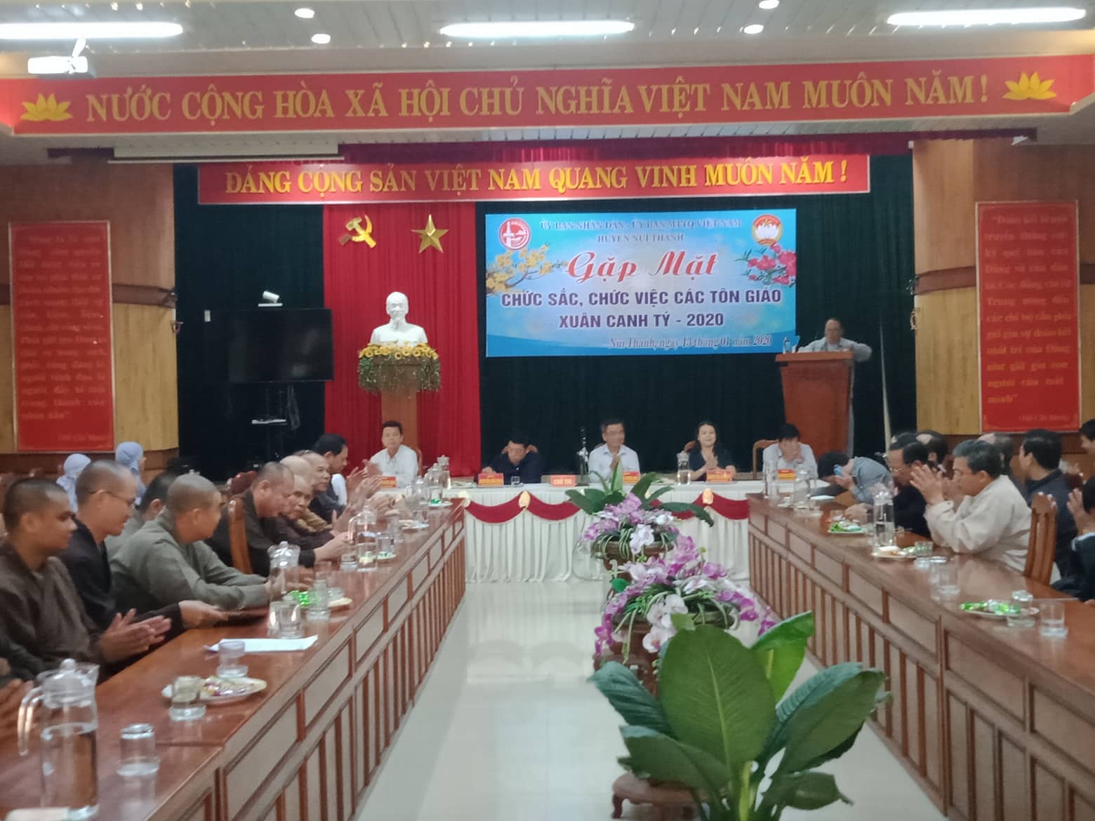 Nhân dịp Xuân Mậu Tuất – 2018, ngày 31/01, Ủy ban MTTQ Việt Nam huyện phối hợp UBND huyện đã tổ chức gặp mặt chức sắc các tôn giáo trên địa bàn huyện nhằm thắt chặt mối quan hệ gắn bó, trao đổi tâm tư, tình cảm giữa chính quyền, Mặt trận, đoàn thể và các tổ chức tôn giáo.