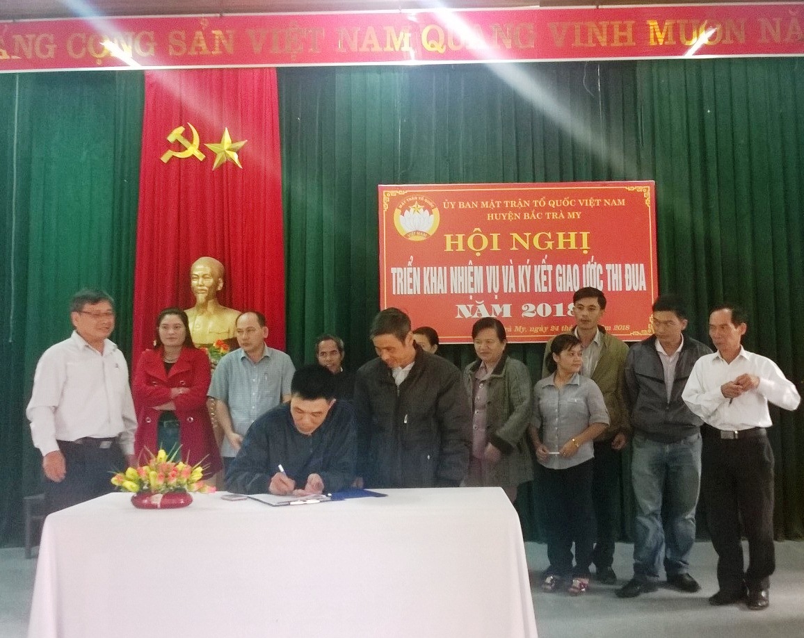Tại Hội nghị, Ban Thường trực Ủy ban MTTQ Việt Nam các xã, thị trấn ký biên bản cam kết giao ước thi đua công tác Mặt trận năm 2018 với Ban Thường trực Ủy ban MTTQ Việt Nam huyện. Qua đó, thể hiện được sự quyết tâm thi đua giữa các xã, thị trấn trên địa bàn huyện trong năm 2018.