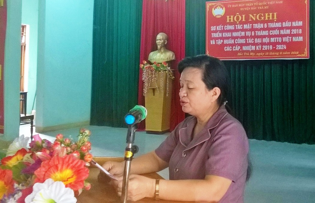 Bà Nguyễn Thị Minh Lành, Chủ tịch Ủy ban MTTQ Việt Nam huyện Bắc trà My phát biểu kết luận hội nghị