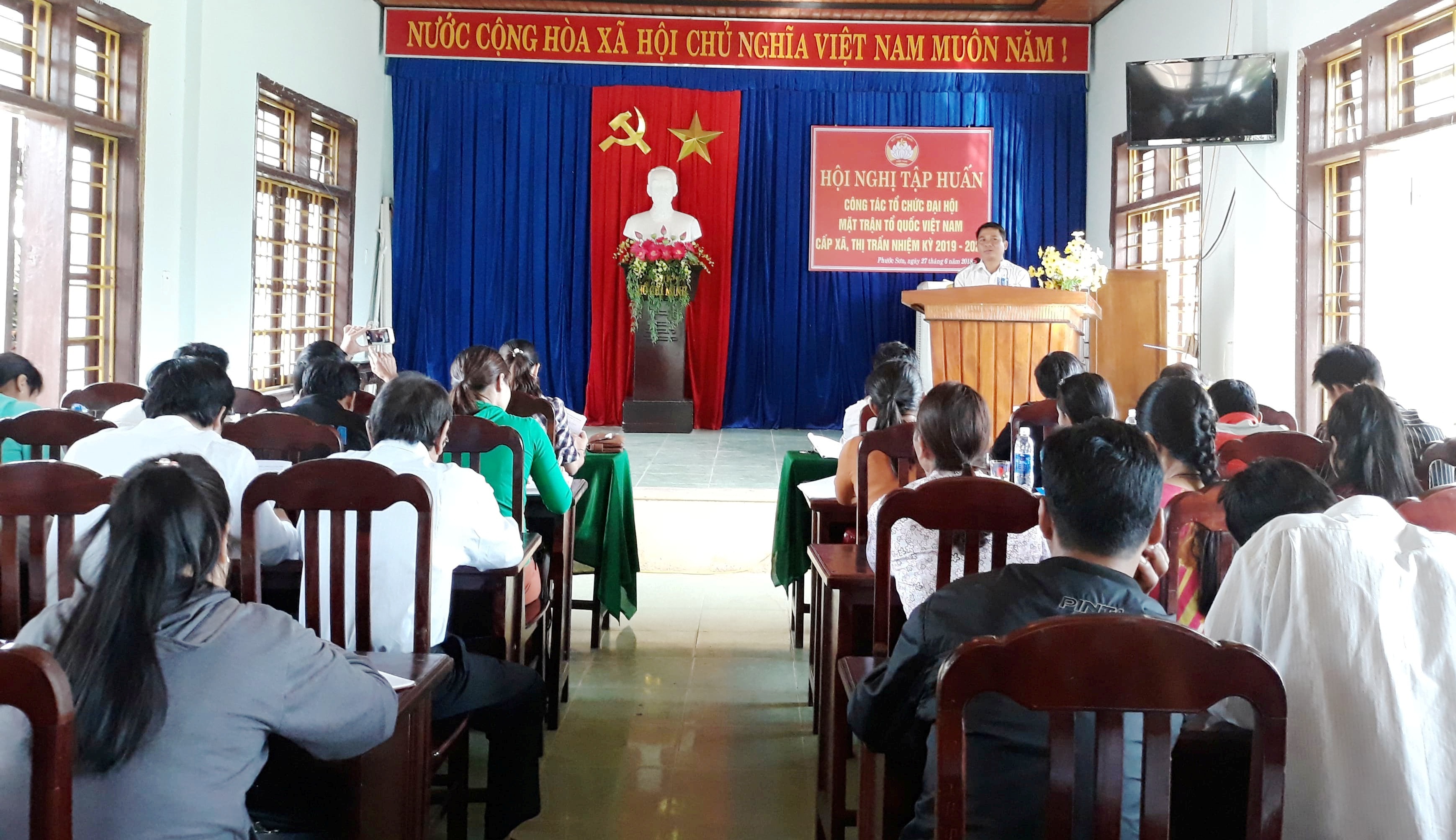 Hội nghị quán triệt thông qua Chỉ thị số 27-CT/TU ngày 30/3/2018 của Tỉnh ủy Quảng Nam về lãnh đạo Đại hội Mặt trận Tổ quốc Việt Nam các cấp và Đại hội Mặt trận Tổ quốc Việt Nam tỉnh Quảng Nam lần thứ X, nhiệm kỳ 2019 - 2024; Thông tri số 15-TT/HU ngày 23/4/2018 của Huyện ủy Phước Sơn về lãnh đạo Đại hội Mặt trận Tổ quốc Việt Nam cấp cơ sở và Đại hội đại biểu Mặt trận Tổ quốc Việt Nam huyện Phước Sơn lần thứ IX, nhiệm kỳ 2019-2024 và các văn bản có liên quan; các đồng chí trong Ban Thường trực Ủy ban MTTQ Việt Nam huyện tập trung hướng dẫn một số hoạt động, nhiệm vụ của Ban Công tác Mặt trận khu dân cư trong việc triển khai các quy trình (tổ chức Hội nghị) trước khi tổ chức Đại hội MTTQ Việt Nam các cấp huyện Phước Sơn nhiệm kỳ 2019-2024.