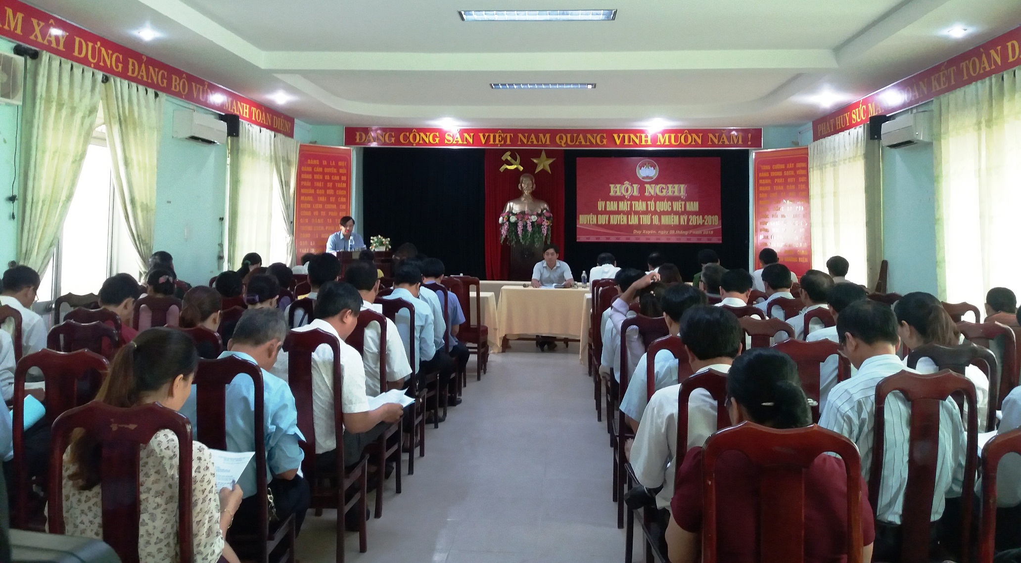 Đến dự Hội nghị có ông Nguyễn Quang Mạnh- Phó Bí thư Thường trực Huyện ủy; các đồng chí trong Ban Thường vụ Huyện ủy, HĐND-UBND-UBMTTQ Việt Nam huyện; các Ban xây dựng đảng; các ngành liên quan và 61 vị Ủy viên Ủy ban MTTQ Việt Nam huyện, khóa IX; Chủ tịch, Phó Chủ tịch Ủy ban MTTQ Việt Nam 14 xã-thị trấn. Ông Phạm Được, UVTV-Chủ tịch Ủy ban MTTQ Việt Nam huyện chủ trì hội nghị.