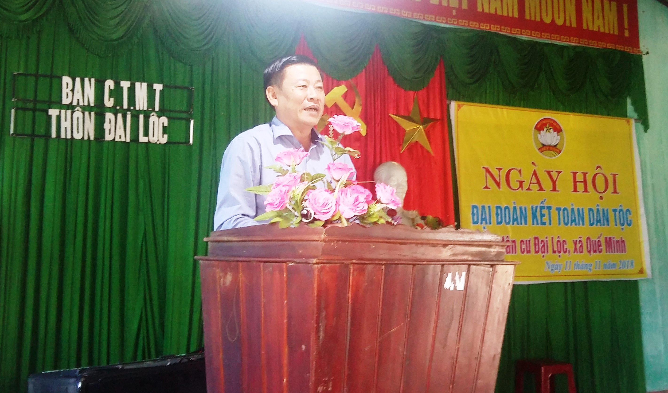 Phát biểu chung vui với bà con nhân dân, ông Lê Thái Bình - Phó Chủ tịch Ủy ban MTTQ Việt Nam tỉnh biểu dương, ghi nhận những kết quả mà chính quyền và bà con nhân dân khu dân cư đạt được trong thời gian qua. Ông mong muốn trong thời gian tới, toàn thể cán bộ, nhân dân khu dân cư Đại Lộc tiếp tục phát huy tinh thần đoàn kết, thúc đẩy các phong trào thi đua, đẩy mạnh phát triển kinh tế, nâng cao đời sống, hiệu quả các phong trào giúp nhau giảm nghèo bền vững, chung sức xây dựng nông thôn mới, đô thị văn minh; thường xuyên đối thoại, lắng nghe, nắm bắt tâm tư, nguyện vọng của nhân dân để giải quyết kịp thời những nguyện vọng chính đáng của nhân dân…