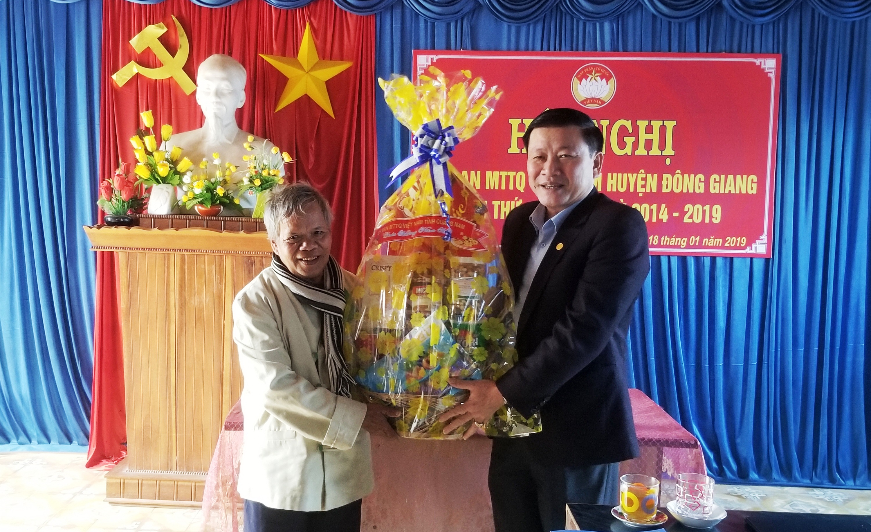 Sáng ngày 18.01.2019, Ủy ban MTTQ Việt Nam huyện Đông Giang tổ chức Hội nghị tổng kết công tác mặt trận năm 2018 và triển khai phương hướng, nhiệm vụ năm 2019. Về dự có đồng chí Lê Thái Bình, Phó Chủ tịch Ủy ban MTTQ Việt Nam tỉnh.