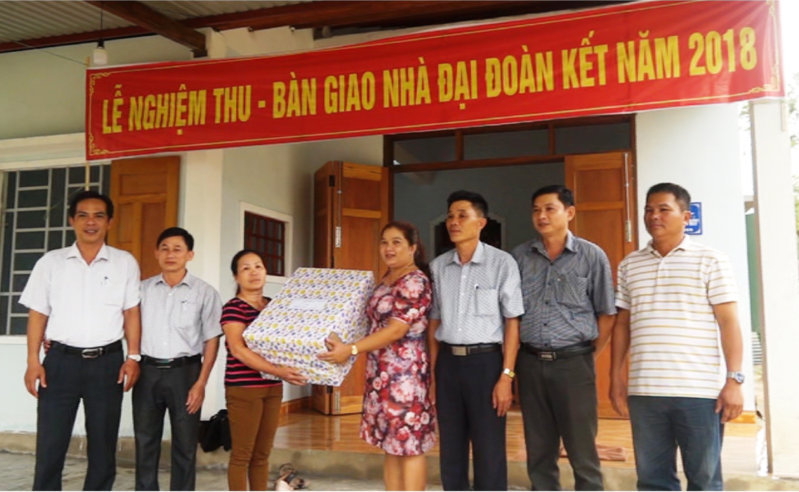 Hộ bà Huỳnh Thị Chờ có hoàn cảnh rất khó khăn, chồng bà không may mất sớm, một mình bà phải nuôi 6 người con ăn học. Những năm qua, gia đình bà sống trong ngôi nhà gỗ đã mục nát, xuống cấp. Năm 2018, Ủy ban MTTQ Việt Nam huyện đã xem xét hồ sơ đề nghị thống nhất hỗ trợ cho gia đình bà xây dựng nhà Đại đoàn kết. Ngôi nhà được khởi công xây dựng trong tháng 12 năm 2018. Sau 2 tháng thi công, ngôi nhà rộng trên 100m2 đã hoàn thiện đưa vào sử dụng. Ngôi nhà có tổng kinh phí xây dựng trên 130 triệu đồng. Trong đó, Quỹ vì người nghèo huyện hỗ trợ 40 triệu đồng. Còn lại gia đình bà Chờ vay mượn, đóng góp. Ngôi nhà được xây dựng là nhà cấp 4, đảm bảo 3 cứng, với 1 phòng khách và 2 phòng ngũ. Nền lát gạch men, mái lợp tôn.