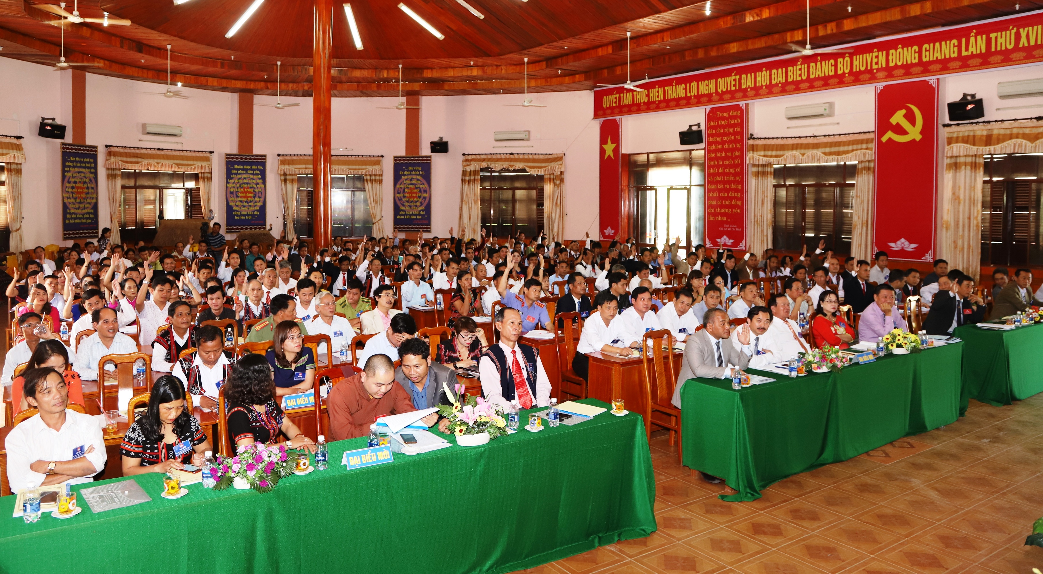 Được sự thống nhất của Ban Thường trực Ủy ban MTTQ Việt Nam tỉnh Quảng Nam và Ban Thường vụ Huyện ủy huyện Đông Giang về thời gian tổ chức đại hội MTTQ Việt Nam huyện, Đại hội đại biểu MTTQ Việt Nam huyện Đông Giang lần thứ XII, nhiệm kỳ 2019-2024 được tổ chức trọng thể tại Hội trường Trung tâm Văn hóa huyện Đông Giang từ ngày 26 đến ngày 27/3/2019 với sự tham dự của 154 đại biểu chính thức và hơn 80 đại biểu khách mời.