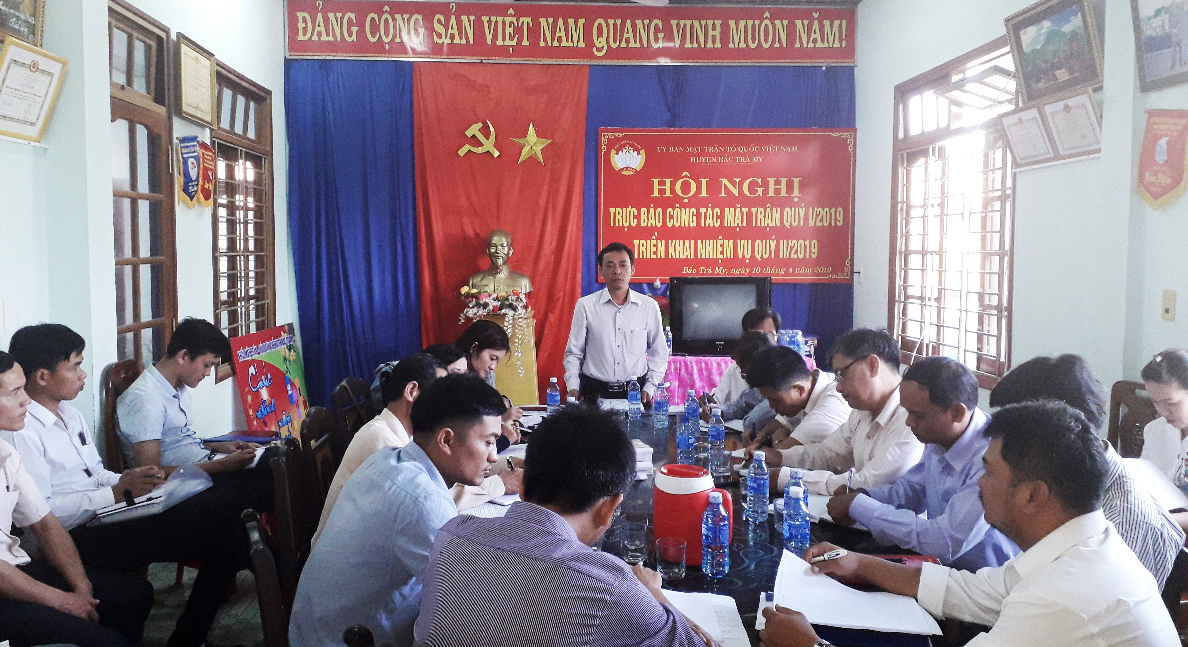 Về nhiệm vụ quý II/2019, đồng chí Nguyễn Hữu Trung, Phó Chủ tịch Ủy ban MTTQ Việt Nam huyện yêu cầu các địa phương cần tập trung tổ chức triển khai thực hiện một số nhiệm vụ trọng tâm như: Tổ chức tuyên truyền và phát động phong trào thi đua lập thành tích chào mừng Đại hội đại biểu MTTQ Việt Nam các cấp; vận động Quỹ “Vì người nghèo”; xây dựng các mô hình trong thực hiện Cuộc vận động “Toàn dân đoàn kết xây dựng nông thôn mới, đô thị văn minh”; tổ chức giám sát và phản biện xã hội và các diễn đàn đối thoại; tham gia góp ý xây dựng đội ngũ CBCC- VC; nắm chắc tình hình tư tưởng, đời sống của Nhân dân; phối hợp xét chọn đại biểu ưu tú về tham dự Đại hội các Dân tộc thiểu số huyện; tiếp tục củng cố kiện toàn Ban công tác Mặt trận và Ủy ban MTTQ Việt Nam cấp xã; xây dựng quy chế hoạt động và quy chế phối hợp với HĐND-UBND và các tổ chức chính trị- xã hội cùng cấp./.