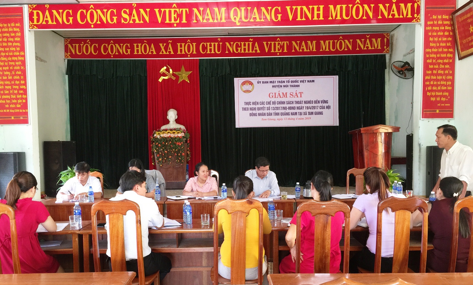 Vừa qua, Ủy ban Mặt trận Tổ quốc Việt Nam huyện Núi Thành tổ chức đoàn giám sát công tác giải quyết chế độ chính sách cho các hộ đăng ký thoát nghèo bền vững theo Nghị Quyết số 13/2017 NQ-HĐND ngày 19/4/2017 của Hội Đồng Nhân Dân tỉnh Quảng Nam (Nghị quyết số 13) về “Chính sách khuyến khích thoát nghèo bền vững tỉnh Quảng Nam, giai đoạn 2017 - 2021" đối với UBND xã Tam Giang và Tam Trà. Ông Võ Văn Thạnh - Phó Chủ tịch Ủy ban MTTQ Việt Nam huyện làm Trưởng đoàn.