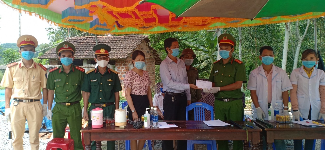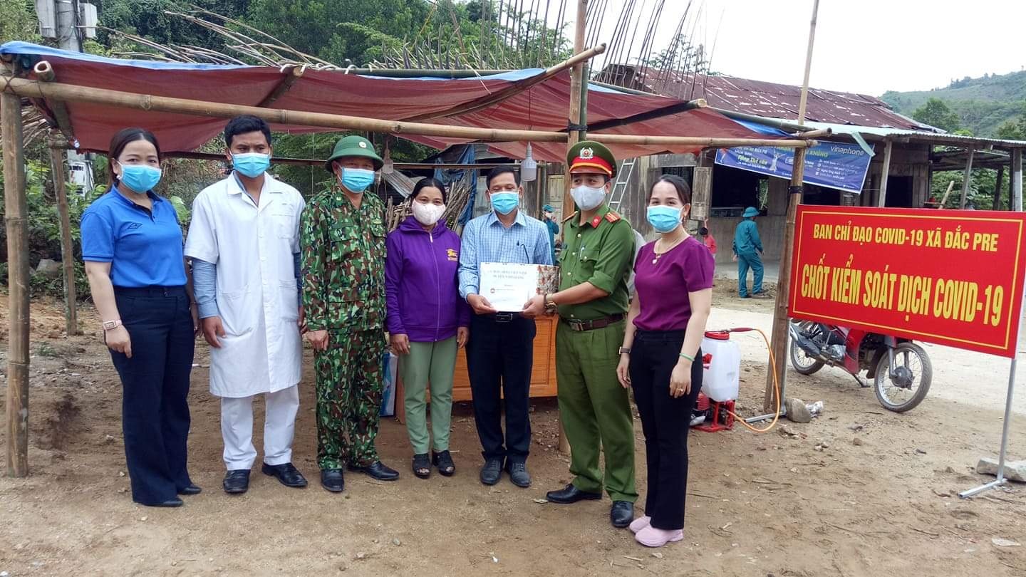 Ngày 14/4, BanThường trực Ủy ban MTTQ Việt Nam huyện Đông Giang tổ chức đến thăm, tặng quà và động viên lực lượng làm nhiệm vụ tại chốt kiểm soát phòng, chống dịch covid-19 trên địa bàn huyện, mỗi điểm 3 triệu, tổng số tiền là 9 triệu đồng.