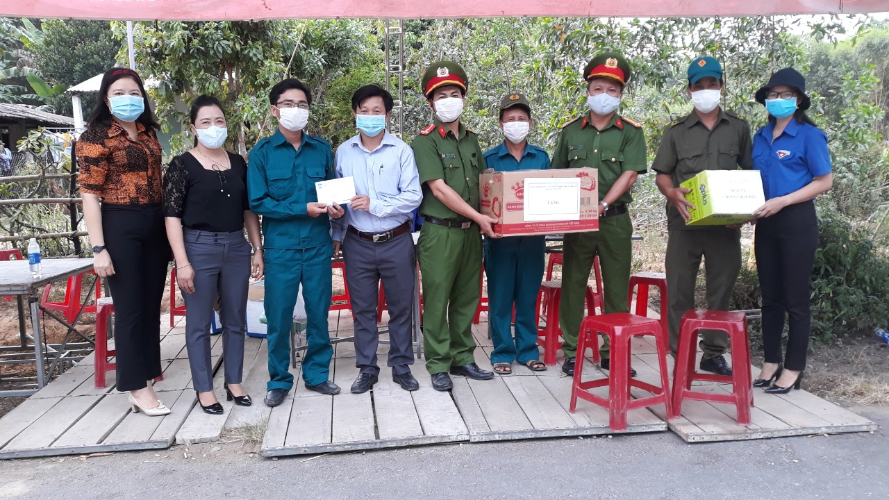 Tại trạm chốt kiểm soát phòng, chống dịch Covid-19, đồng chí Nguyễn Văn Bằng - UVBTV Huyện ủy, Chủ tịch Ủy ban MTTQ Việt Nam huyện đã động viên tinh thần các cán bộ, chiến sĩ tham gia tổ công tác, luôn đảm bảo sức khỏe, tiếp tục phối hợp có hiệu quả với các lực lượng triển khai đồng bộ biện pháp nghiệp vụ, chuyên môn, thực hiện nghiêm túc, hiệu quả Chỉ thị 16 của Thủ tướng Chính phủ và các văn bản hướng dẫn của tỉnh, huyện, quyết tâm bảo đảm an toàn cho Nhân dân trên địa bàn huyện; đồng thời, thay mặt Đoàn công tác Mặt trận-Đoàn thể huyện trao tặng số tiền: 2.500.000đ cho lực lượng tham gia chốt chặn và các lực lượng liên ngành.