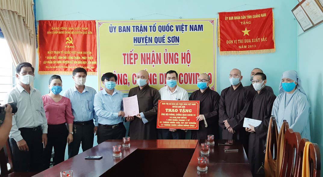Ngày 13 và 16.4.2020, Ban trị sự Giáo hội Phật giáo Việt Nam huyện Quế Sơn; Hội thánh Tin lành Quế Sơn; Công ty TNHH Hoàng Anh Khôi đã đến Ủy ban MTTTQ Việt Nam Nam huyện Quế Sơn ủng hộ công tác phòng, chống dịch Covid-19 gồm 54 triệu tiền mặt; 2.000 khẩu trang; 01 thùng nước rửa tay sát khuẩn; 17 thùng nước uống đóng chai. Ông Lý Xuân Phong - UVBTV Huyện ủy, Chủ tịch Ủy ban MTTQ Việt Nam huyện tiếp đón đoàn và trao thư cảm ơn cho các tổ chức tôn giáo, doanh nghiệp.