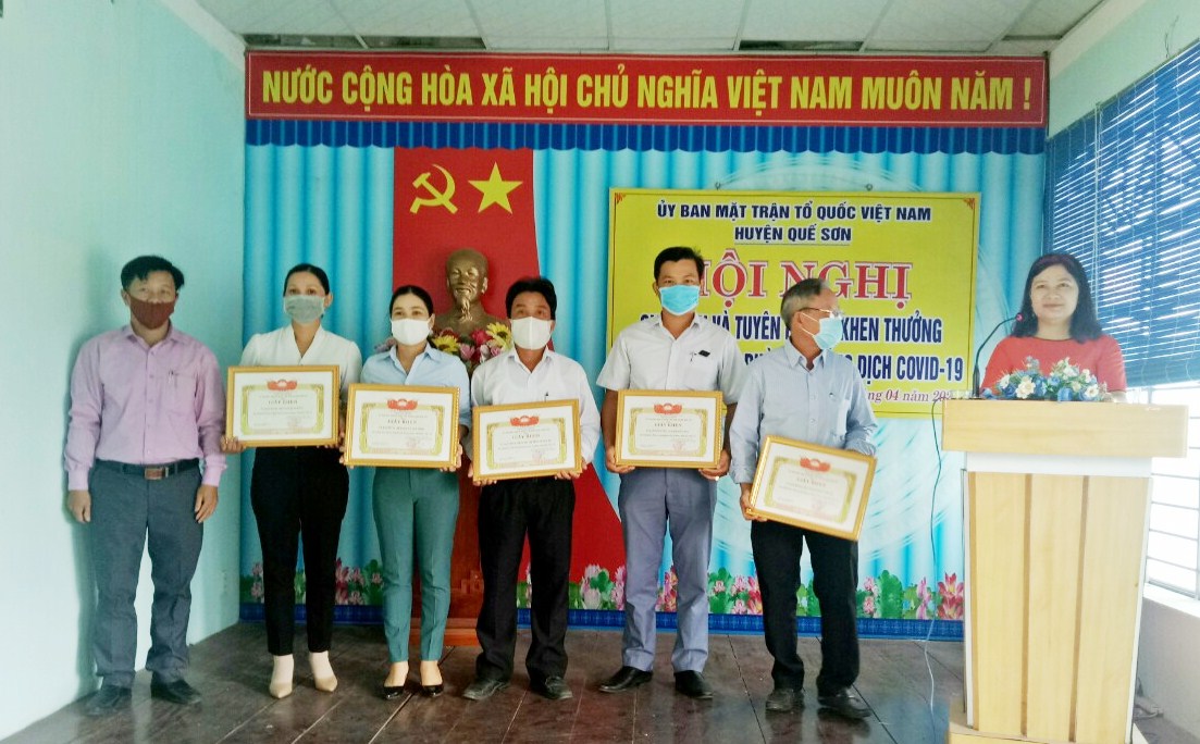 Tại Hội nghị Ban Thường trực Ủy ban MTTQ Việt Nam huyện đã biểu dương khen thưởng cho 06 tập thể: Ủy ban MTTQ Việt Nam xã Quế Xuân 2, Quế Mỹ, Quế Thuận, Quế Châu, Quế Minh và thị trấn Hương An và 05 cá nhân là Chủ tịch, Phó Chủ tịch Ủy ban MTTQ Việt Nam các xã Quế Xuân 2, Quế Mỹ, Quế Châu, Quế Minh và thị trấn Hương An có thành tích xuất sắc trong tham gia công tác phòng, chống dịch bệnh COVID - 19./.