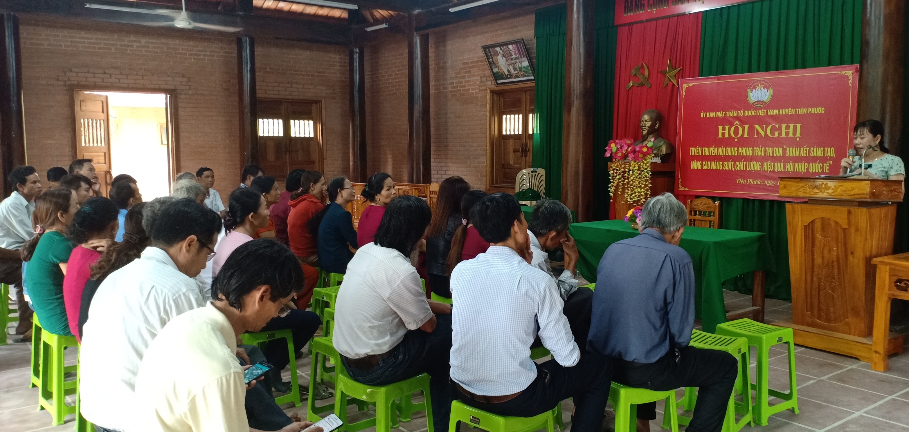 Để tiếp tục triển khai kế hoạch của Ban Thường trực Ủy ban MTTQ Việt Nam tỉnh về xây dựng điểm phong trào thi đua “Đoàn kết sáng tạo” trên địa bàn tỉnh, ngày 19/5/2020, Ban Thường trực Ủy ban MTTQ Việt Nam huyện tổ chức tuyên truyền nội dung Đề án phong trào thi đua “ Đoàn kết sáng tạo, nâng cao năng suất, chất lượng, hiệu quả, hội nhập quốc tế” trong nhân dân tại 02 điểm của xã Tiên Cảnh, có gần 100 người dự.