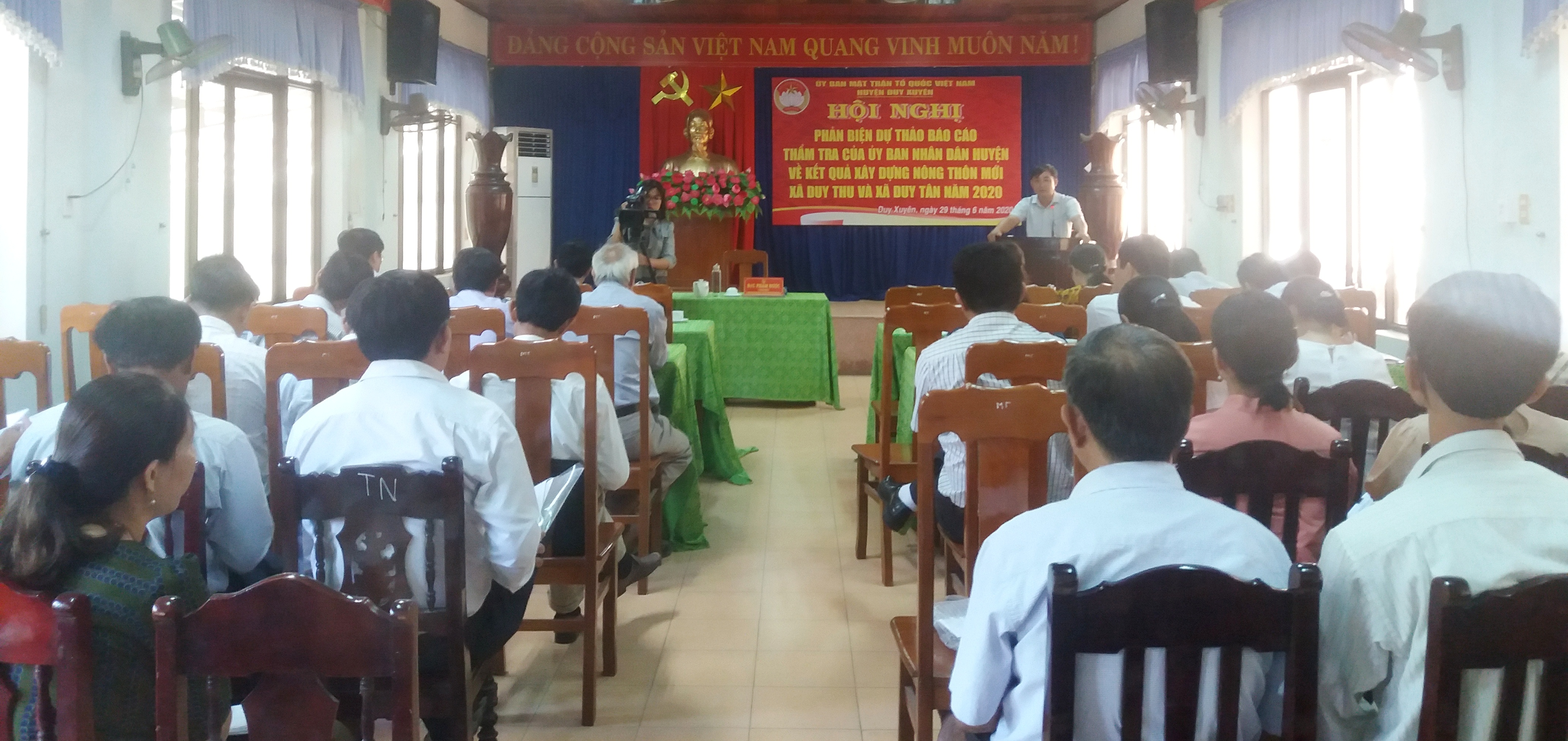 Theo kết quả thẩm tra của UBND huyện, đến cuối năm 2019 xã Duy Thu và Duy Tân đã thực hiện hoàn thành 19/19 tiêu chí quốc gia về nông thôn mới, đạt tỷ lệ 100%. Với tinh thần dân chủ, trách nhiệm hội nghị đã nhận được 10 ý kiến tham gia góp ý. Các đại biểu nêu lên những lập luận, phân tích đánh giá xoay quanh các tiêu chí về giao thông nông thôn, thu nhập, lao động, việc làm, môi trường, về tỷ lệ đánh giá ở một số tiêu chí khác...; đồng thời kiến nghị UBND huyện cần xem lại và điều chỉnh một số tiêu chí cụ thể như sau: đối với tiêu chí số 2 về giao thông, báo cáo đánh giá đạt 100% chưa phù hợp với thực tế vì hiện nay trên địa bàn 2 xã còn nhiều đoạn đường thôn, xóm xuống cấp hư hỏng, ngập úng vào mùa mưa nhưng chưa được đầu tư chỉnh sửa; đối với tiêu chí 17 về môi trường và ATTP báo cáo đạt 86,7 % là quá cao vì lượng rác thải sinh hoạt, rác thải là các loại vỏ bao bì thuốc bảo vệ thực vật gây ô nhiễm môi trường tại 2 xã chưa được quan tâm xử lý, điều chỉnh chỉ tiêu này đạt mức 75 % ; đối với tiêu chí số 11 về hộ nghèo, đề nghị bổ sung giải pháp để hỗ trợ những hộ nghèo nằm trong diện bảo trợ xã hội vươn lên thoát nghèo; tiêu chí số 12 về lao động có việc làm cần điều chỉnh vì số lao động có việc làm trong độ tuổi lao động tỉ lệ thấp...