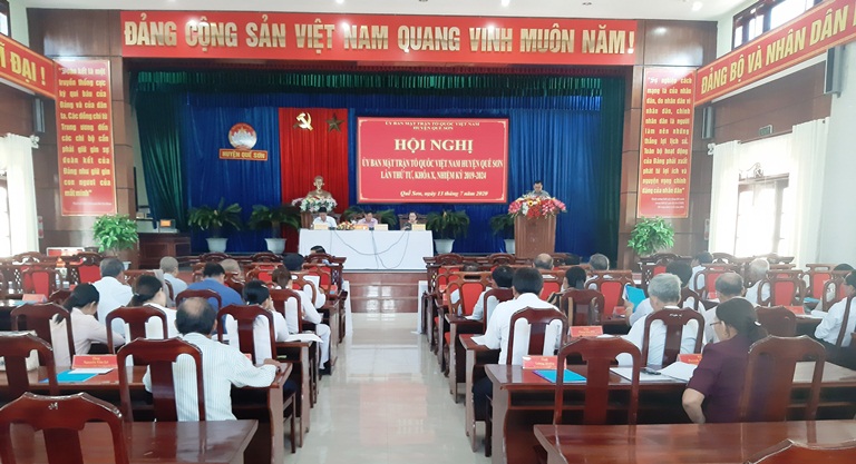Quế Sơn: Ngày 13/7/2020, Ủy ban MTTQ Việt Nam huyện Quế Sơn tổ chức Hội nghị lần thứ tư, khóa X, nhiệm kỳ 2019-2024 nhằm sơ kết công tác Mặt trận 6 tháng đầu năm, thảo luận, thống nhất Chương trình phối hợp và thống nhất hành động 6 tháng cuối năm 2020; hiệp thương cử bổ sung Ủy viên Ủy ban MTTQ Việt Nam huyện khóa X, nhiệm kỳ 2019-2024.