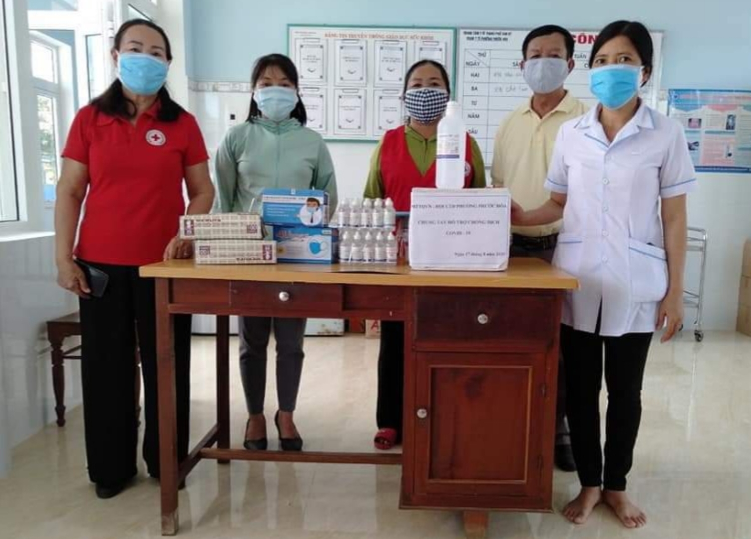 Ủy ban MTTQ Việt Nam và Hội CTĐ phường hỗ trợ nước sát khuẩn, khẩu trang