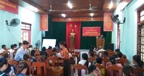 Tham dự buổi tập huấn có Bí thư chi bộ, Trưởng Ban CTMT của 6 thôn. Báo cáo viên do cán bộ Trung tâm Kĩ thuật nông nghiệp huyện triển khai.